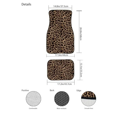 Menu 1. We require immediate payment. 2. We currently accept payment via eBay managed payments only. 3. Once payment is cleared, we will dispatch your shipment within 1-3 business days. Please refer to the "Shipping" tab for more information regarding shipping speed to your destination. Brown Leopard Print Car Floor Mats Universal Abstract Cheetah Pattern Wild Animal Skin Texture Floor Mats for Cars Front Rear Car Foot Mats Rugs Cute Car Accessories for Trucks SUV Sedans Product description Size: Package includes 2 front mats and 2 rear mats; Universal size with moderate thickness, not easy to curl. Our all-weather car floor mats fit for most vehicles such as cars, SUV, trucks, van and sedans. Please check the detailed size before purchg Material: Our brown leopard skin cheetah pattern floor mats for cars are made of polyester fabric and rubber backing with heavy nibbed design which can keep your foot mats in place, not easy to slip; Washable and heavy-duty design make it a nice choose to keep your car floor get better maintenance and reduce friction damage Design: Our abstract wild animal skin vehicle front rear carpets mats with practical design can be a great replacement for old and worn original mats; You don't have to worry about the dirt and mud from your shoes will stain your car when you get in, or getting your car floor wet in rainy days; The stylish pattern not only decorates your car interior well but also brings wonderful visual experience Maintenance: Easy to install and maintain; Easy to clean, just vacuum or rinse off dirt, mud and spills with water; Air drying is recommended. The mats are rolled in a package for easy transportation, please spread them out flat and check if the items are complete when you receive the package Present: Amazing presents to decor your vehicle's interior for birthday, wedding, anniversary and other holidays, great choice for your family and friends, especially car lovers and new car owners. If you want to get a car decor that can be eye-catching while protecting your car floor, our all-weather car foot mats are what you need PLEASE MESSAGE US IF YOU HAVE ANY OTHER QUESTIONS, AND MANY THANKS FOR READING ALL OF THIS. Copyright ©#. All Rights Reserved.