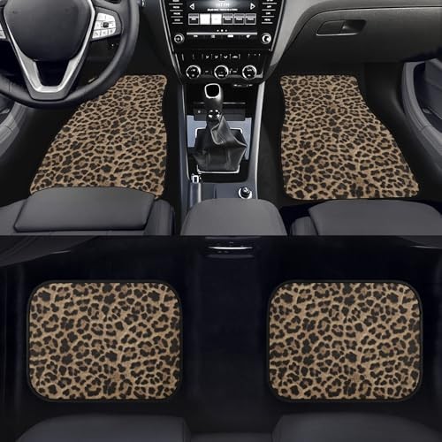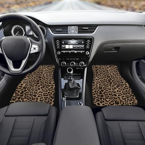 Leopard Print Car Floor Mats Universal Abstract Cheetah Pattern Wild Brown