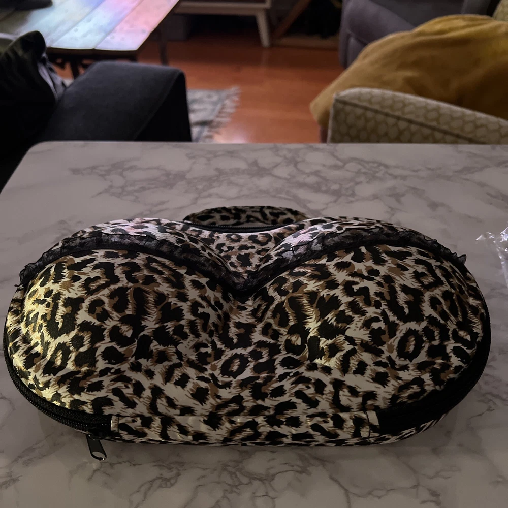This listing is a sassy leopard print bra & panty travel organizer! Raised dome compartment accommodates bras and a mesh pocket hold underwear. Super cute gift!!! Sells on Amazon for $16.99. Thank you for looking!