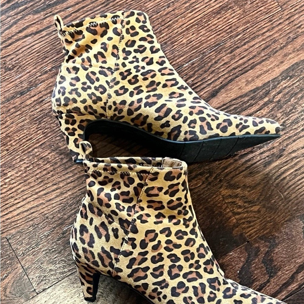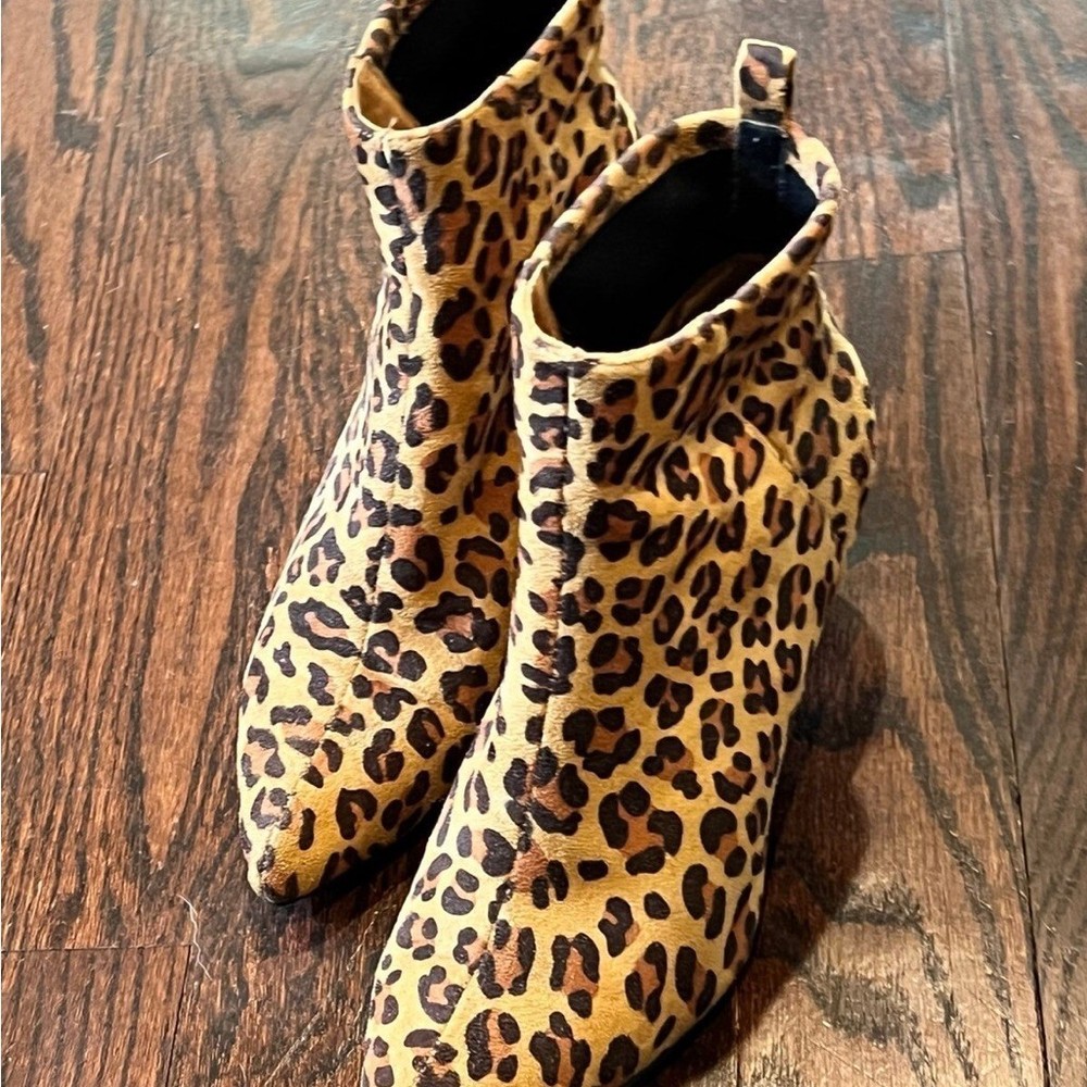 Beautiful Leopard Print Vegan Ankle Boots by BC - Born in California, BC is the vegan sister brand of Seychelles Footwear! Size 7.5 Kitten heel Excellent gently used condition!