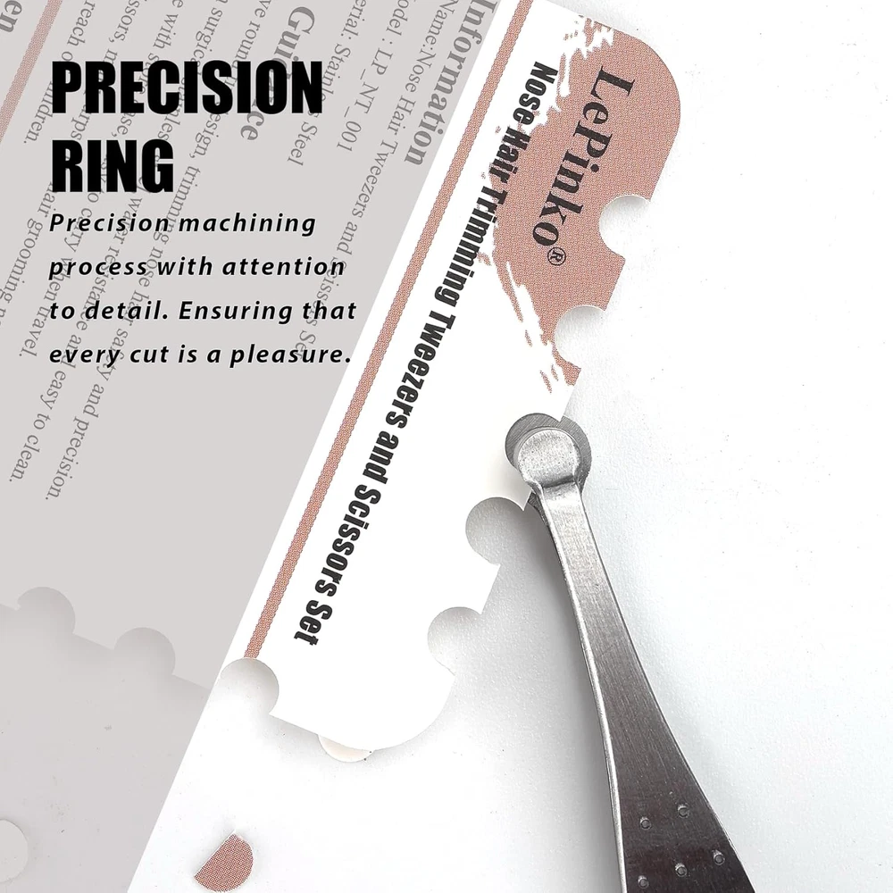 Precision Ring Design - Place the rounded tip on the inside of your nose, go through the thick nose hair and squeezing the tweezers it cut nose hair easily. Just remember to squeeze, not pull. No Plucking Required. The round rings are handmade and of high quality. Designed for long-lasting use. Simple and Painless - The tip ring, which acts like scissors, has the appearance of tweezers. Trimming hair as precisely as scissors, no batteries, no charging, no mirrors. You can quickly and safely remove unwanted hair without the risk of scratching and irritating your skin. Multipurpose Scissors - Rounded blade tip will not accidentally poke or hurt sensitive nostrils or skin. Ergonomic design with large finger loops provides added control. Sharp blade scissors for trimming body beard nose facial ear eyebrows eyelashes mustache hair cuticle bikini baby nail. Combination Sets - Come with nose hair tweezers and rounded tips scissors, designed for a variety of scenarios. Come with portable packages and easy to carry, suitable for daily use. Mini size makes it easy to pack in your toiletry case bag when traveling. For Men & Women - Suitable for ears, eyebrows, sideburns and stray hairs on the body, it is idea for finer details such as eyebrow trimming. Gifts for men women guy girl senior junior friends family. Perfect choice for birthday valentine's mothers fathers day, stocking stuffers in christmas. Product Description Nose Hair Tweezer and Scissors Set Precision ring design Precision machining process with attention to detail. Ensuring that every cut is a pleasure. Simple and Painless The tip ring, which acts like scissors, has the appearance of tweezers. Multipurpose beauty scissors Rounded blade tip will not accidentally poke or hurt sensitive nostrils or skin. Portable package Suitable for daily use. Mini size makes it easy to pack in your toiletry case bag when traveling. Designed for men and women Nose hair tweezers Suitable for ears, eyebrows, sideburns and stray hairs on the body, it is ideal for finer details such as eyebrow trimming Sharp blade rounded tips scissors Sharp blade scissors for trimming body beard nose facial ear eyebrows eyelashes mustache hair cuticle bikini baby nail. Gifts for men women guy girl senior junior friends family. Perfect choice for birthday valentine's mothers fathers day, stocking stuffers in christmas. How to using the nose hair tweezers? Place the rounded tip on the inside of your nose, go through the thick nose hair and squeezing the tweezers it cut nose hair easily. Just remember to squeeze, not pull. No Plucking Required. How to maintain the tools? 1. Ensure to clean your scissors and tweezers set before and after each use. 2. Keep the scissors and tweezers body and blades dry avoid rust. 3. Personal Care products, do not mix use. What materials are the tools made of? High quality Stainless steel LePinko Beauty Tools Collections Add to Cart Add to Cart Add to Cart Add to Cart Add to Cart Add to Cart Add to Cart Customer Reviews 4.4 out of 5 stars 8,835 4.6 out of 5 stars 716 4.0 out of 5 stars 26 4.0 out of 5 stars 823 4.6 out of 5 stars 1,511 4.6 out of 5 stars 150 4.6 out of 5 stars 1,614 Price $5.99 $ 5 . 99 $23.99 $ 23 . 99 $9.99 $ 9 . 99 $14.99 $ 14 . 99 $14.99 $ 14 . 99 $9.99 $ 9 . 99 $13.99 $ 13 . 99 Feature Grooming Scissors Cuticle Trimmer Pusher Nose Hair Scissor and Tweezer Eyebrow Trimming Scissors Podiatrist Toenail Clippers Foot Files Sets Nail File Crystal Nail Shiner Material Stainless Steel Stainless Steel Stainless Steel Powder Steel Stainless Steel Stainless Steel Stainless Steel And Glass Gifts ✔ ✔ ✔ ✔ ✔ ✔ ✔ Daily Use ✔ ✔ ✔ ✔ ✔ ✔ ✔ Professional ✔ ✔ ✔ ✔ ✔ ✔ ✔