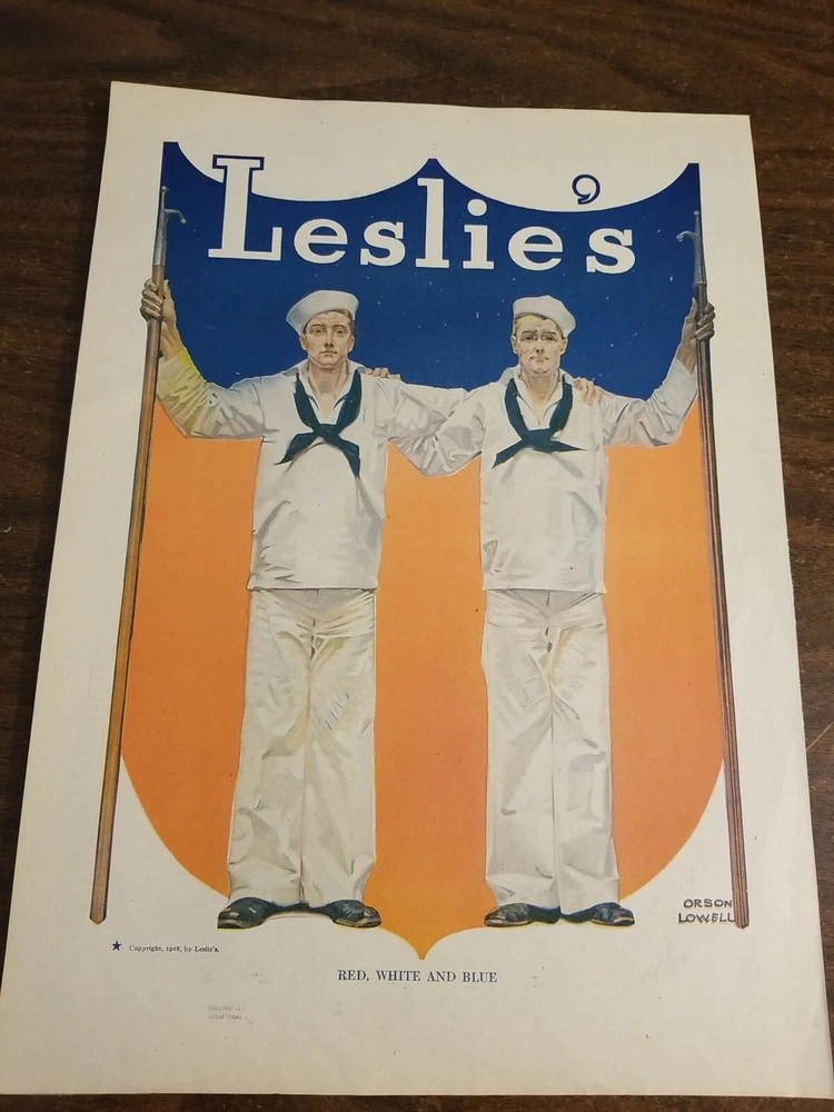 Leslie's Red,White And Blue 1918[#824]. Would look wonderful framed. Back has Marines, nice vignette.Crease on bottom margin does not detract from image.