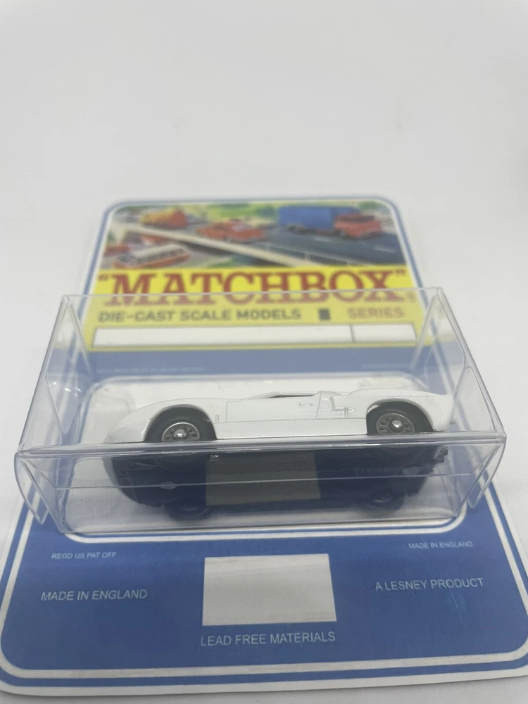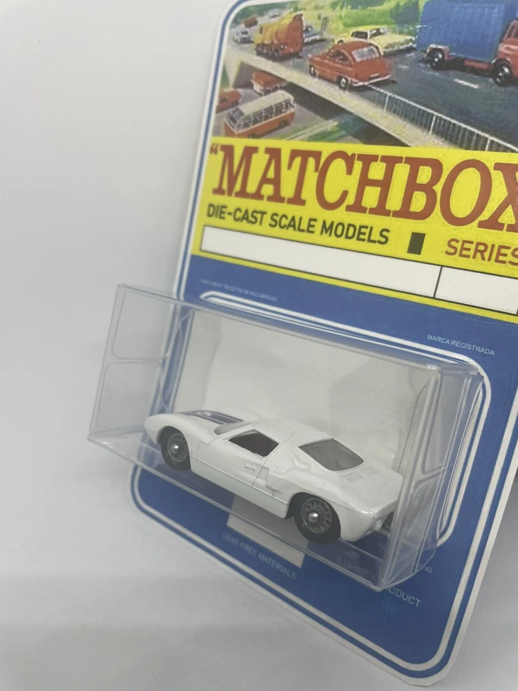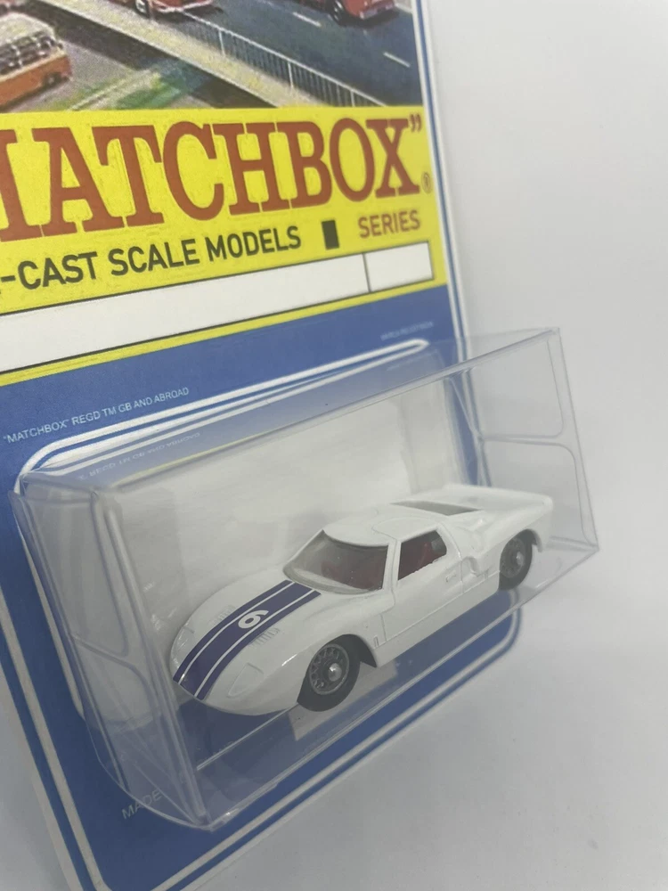 Vintage Lesney Matchbox 41 Custom GT 40 With spoke wheels. RESTORED, NOT ORIGINAL. I restored the vehicle to a high standard. These models and packaging are not original. Please look at the pictures carefully as they are part of the description. Please ask questions before bidding. I combine shipping with multiple orders. These are custom models so I do not except returns. This is a hobby and the vehicle was a used played with toy now restored.