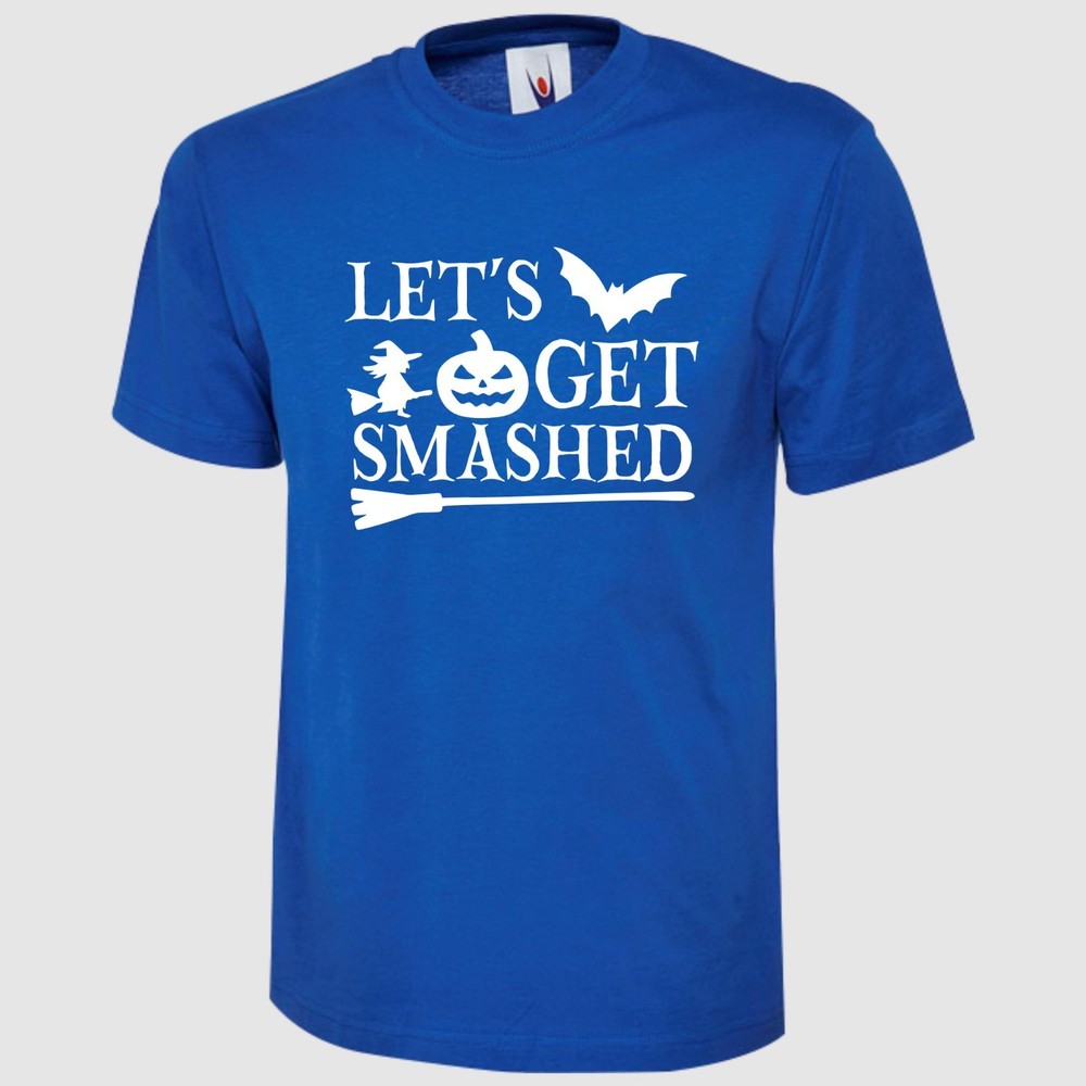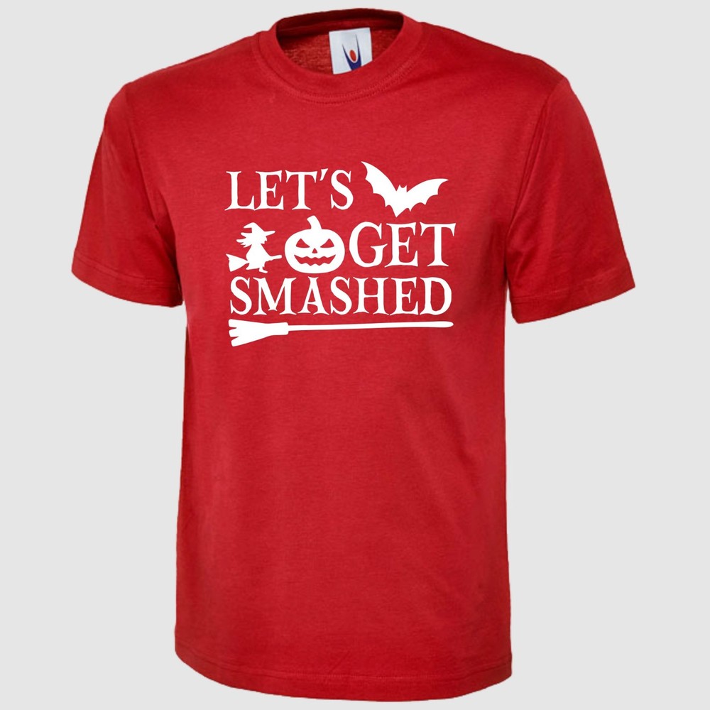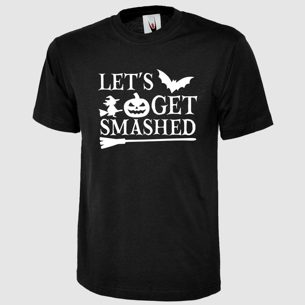 Let's Get Smashed T Shirt Pumpkin Halloween Printed Scary Witch Design Gift Top Product Specifications: Material 100% Cotton Weight 180GSM Crew Neck Reactive Dyed Washable at 40 Degrees Enzyme Washed Taped shoulder To Shoulder Twin Needls Stiching on Neck & Shoulder SIZE CHART: Size Chart - Body Measurement XS S M L XL 2XL 3XL 4XL 5XL 6XL Chest to fit (Inch) 36-38 38-40 40-42 42-44 44-46 46-48 50-52 52-54 54-56 58-60 Chest to fit (cm) 91-96 96-101 101-107 107-112 112-117 117-122 122-132 132 - 137 137 - 142 147 - 152 International Conversion XS S M L XL 2XL 3XL 4XL 5XL 6XL Austria, Switzerland, German, Netherlands, Sweden 44 46 48 50 52 54 56 58 60 62 Belgium, Spain, France, Portugal 36-38 38-40 40-42 42-44 44-46 46-48 48-50 50-52 52-54 54-56 Garment Measurements (Inches) XS S M L XL 2XL 3XL 4XL 5XL 6XL Chest 1/2 Measurement (1" Below Armhole) 18 19.5 21 22.5 24 25.5 27 28.5 30 31.5 Length (Neck Point On Shoulder To Hem) Front 26 27 28 29 30 31 32 33 34 35 Garment Measurements (Cm) XS S M L XL 2XL 3XL 4XL 5XL 6XL Chest 1/2 Measurement (2.5" Below Armhole) 46 49.5 53 57 61 65 68.5 72 76 80 Length (Neck Point On Shoulder To Hem) Front 66 68.5 71 73.5 76 79 81 84 86 89 SIZE DISCLAIMER: Garment Measurement are subject to tolerances which is +/-0.5-1.5 Inches. They are not be taken as absolute measurement values. When a garment is measured, the values may vary and can be above, below or the same as the values stated. IMAGE DISCLAIMER: Please note that all the images shown on this AD reflect the product at the time image was taken and uploaded. Therefore the images may differ slightly in colour, size, appearance and/or packaging than the stock we ship as our stock is refreshed and updated on regular basis. EBAY PROMOTIONAL MULTI-BUY SAVINGS: We offer 5% discount if you buy 3 or more items through any of our eBay listings, 10% discount when you buy 10 or more items and 15% discount when you purchase 15 or more items from our eBay store and discount will automatically apply at eBay checkout page. FEEDBACK: If you feel that we did not meet your expectations, PLEASE CONTACT US through eBay message centre before opening a case or leaving us a Neutral/Negative Feedback. We normally reply within 24 Hours during working hours which are Monday to Friday 9:30AM to 5:00PM BST