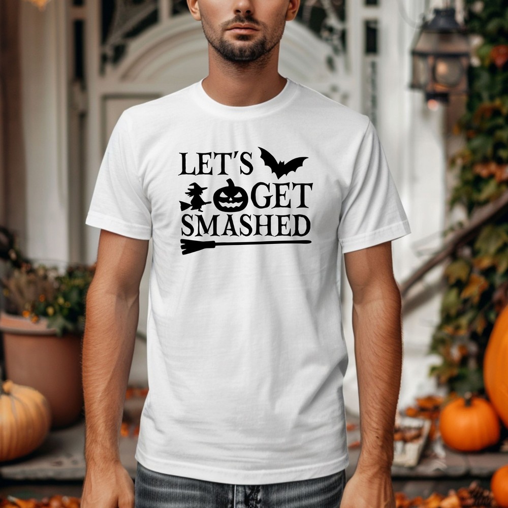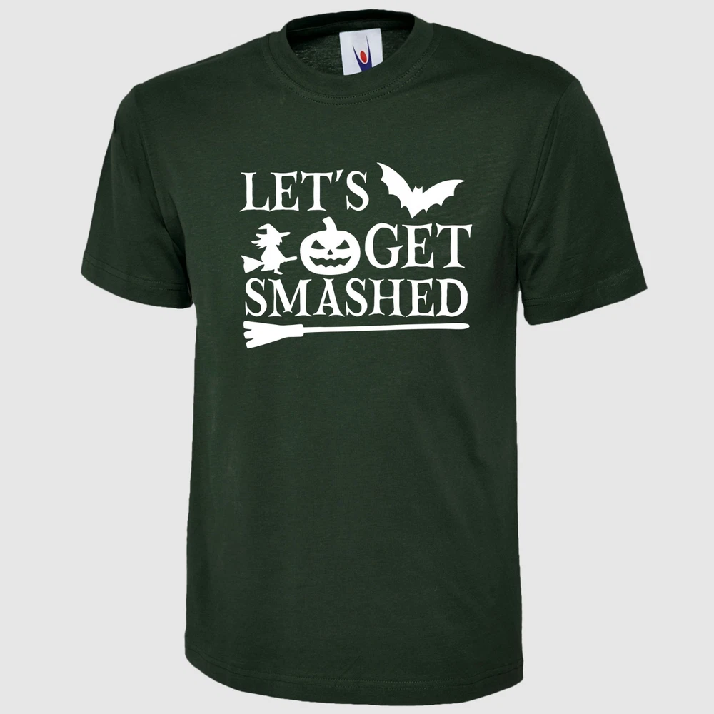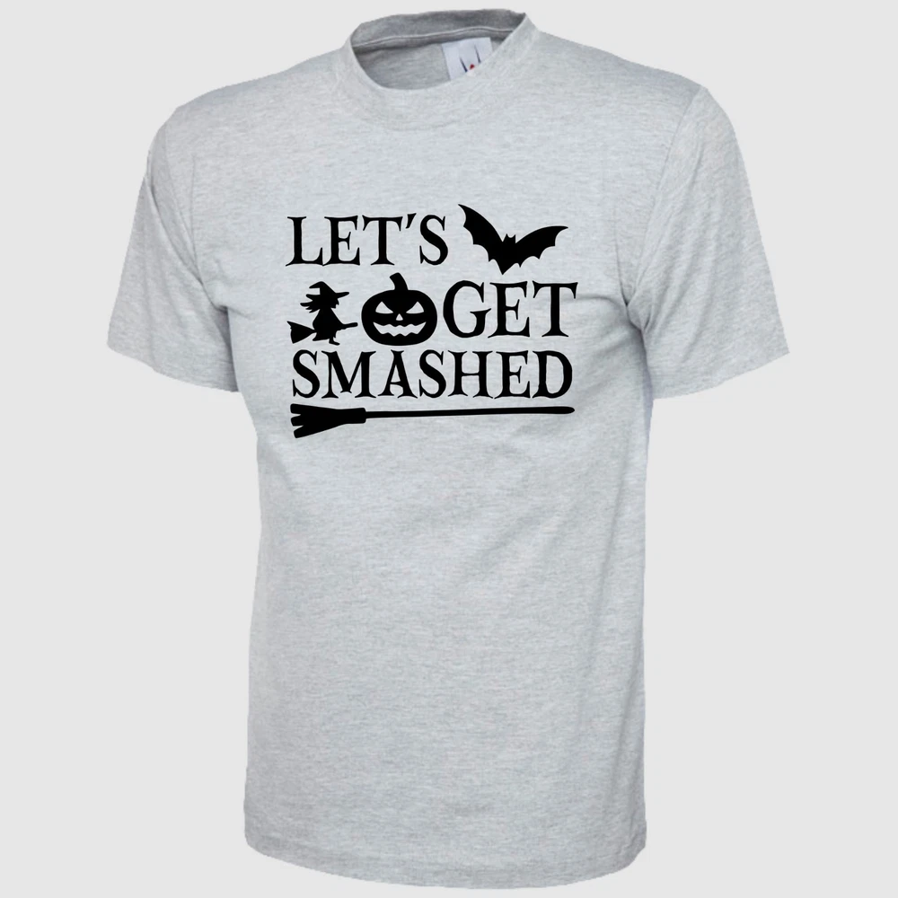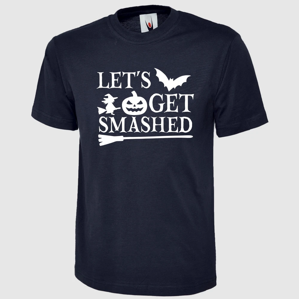 Let's Get Smashed T Shirt Pumpkin Halloween Printed Scary Witch Design Gift Top Product Specifications: Material 100% Cotton Weight 180GSM Crew Neck Reactive Dyed Washable at 40 Degrees Enzyme Washed Taped shoulder To Shoulder Twin Needls Stiching on Neck & Shoulder SIZE CHART: Size Chart - Body Measurement XS S M L XL 2XL 3XL 4XL 5XL 6XL Chest to fit (Inch) 36-38 38-40 40-42 42-44 44-46 46-48 50-52 52-54 54-56 58-60 Chest to fit (cm) 91-96 96-101 101-107 107-112 112-117 117-122 122-132 132 - 137 137 - 142 147 - 152 International Conversion XS S M L XL 2XL 3XL 4XL 5XL 6XL Austria, Switzerland, German, Netherlands, Sweden 44 46 48 50 52 54 56 58 60 62 Belgium, Spain, France, Portugal 36-38 38-40 40-42 42-44 44-46 46-48 48-50 50-52 52-54 54-56 Garment Measurements (Inches) XS S M L XL 2XL 3XL 4XL 5XL 6XL Chest 1/2 Measurement (1" Below Armhole) 18 19.5 21 22.5 24 25.5 27 28.5 30 31.5 Length (Neck Point On Shoulder To Hem) Front 26 27 28 29 30 31 32 33 34 35 Garment Measurements (Cm) XS S M L XL 2XL 3XL 4XL 5XL 6XL Chest 1/2 Measurement (2.5" Below Armhole) 46 49.5 53 57 61 65 68.5 72 76 80 Length (Neck Point On Shoulder To Hem) Front 66 68.5 71 73.5 76 79 81 84 86 89 SIZE DISCLAIMER: Garment Measurement are subject to tolerances which is +/-0.5-1.5 Inches. They are not be taken as absolute measurement values. When a garment is measured, the values may vary and can be above, below or the same as the values stated. IMAGE DISCLAIMER: Please note that all the images shown on this AD reflect the product at the time image was taken and uploaded. Therefore the images may differ slightly in colour, size, appearance and/or packaging than the stock we ship as our stock is refreshed and updated on regular basis. EBAY PROMOTIONAL MULTI-BUY SAVINGS: We offer 5% discount if you buy 3 or more items through any of our eBay listings, 10% discount when you buy 10 or more items and 15% discount when you purchase 15 or more items from our eBay store and discount will automatically apply at eBay checkout page. FEEDBACK: If you feel that we did not meet your expectations, PLEASE CONTACT US through eBay message centre before opening a case or leaving us a Neutral/Negative Feedback. We normally reply within 24 Hours during working hours which are Monday to Friday 9:30AM to 5:00PM BST