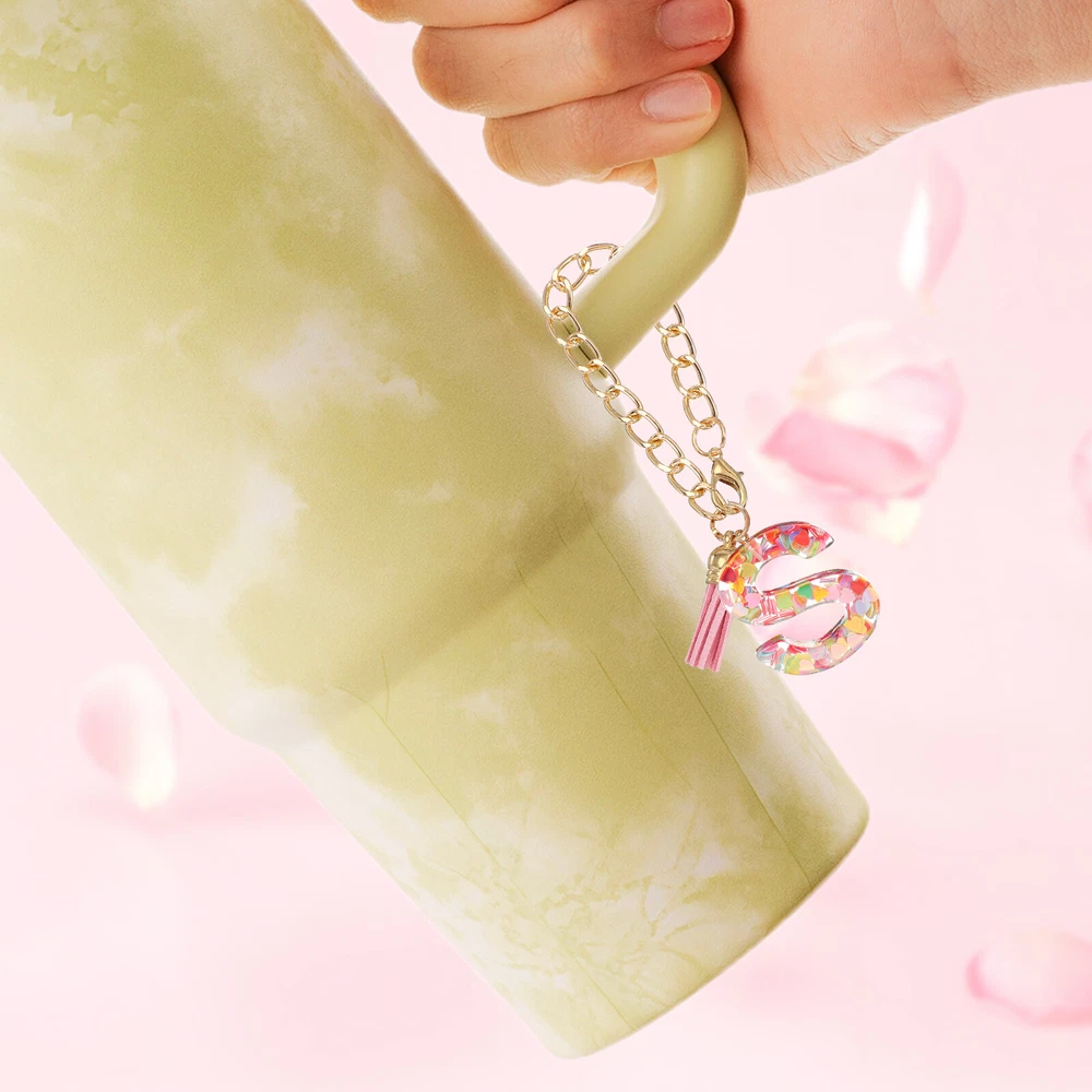 Letter Charm for Stanley Tumbler Cup Initial B Charm Accessories Keychain Pink