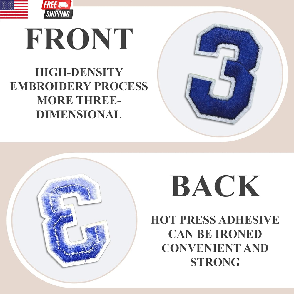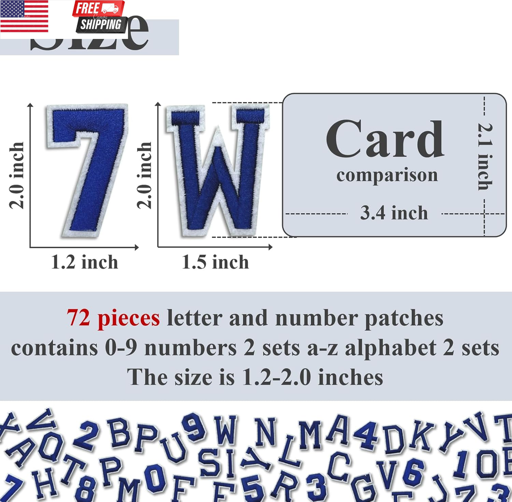 Letter and Number Iron on Patches, A-Z Alphabet and Numbers 0-9 Embroidery Applique Patch, DIY Decorative Heat Press Patches for Clothing Jeans Jackets Backpacks Hats (Blue 72 Pcs) PRODUCT: 72 pieces letter and number patches, contains a-z alphabet 2 sets, 0-9 numbers 2 sets. The size is 1.5-2.0 inches. USE: The back contains hot melt adhesive, set the iron to high power mode, and iron for 30s. You can also use sutures to permanently secure the patch where you want it. COLLOCATION: Clothes, jeans, hats, bags, shoes, tents, curtains, quilt covers, room decor, scrapbooks and other DIY items. EFFECT: These applique patches can be used to repair holes in your clothes, hide imperfections, or serve as DIY accessories. You can combine several patterns together or use them individually as your unique token! CLEANING: Washing machine can be used, will not fall off. Surface dust can also be wiped off with a damp rag. Product Description How to iron on patch ? Step 1: Place the patch where you want it, preheat the iron to 240-300°F (120-150°C), you can place a cotton cloth over the patch before ironing. Step 2: Press iron from both sides for 30-60 seconds to make sure the hot glue melts and sticks well. Step 3: Finally, iron for 30 seconds from the front, mainly in the corners, to ensure a smooth surface. Step 4: After waiting for the patch to cool, check it, repeat the steps above for any areas that were not ironed. Item model number ZM1037 Style Art Deco Number of Items 72 Mounting Type Iron-On, Sewing Color Blue 72 Pcs Material Polyester Country of Origin China Shape Letter Item Weight 3.52 ounces Theme Alphabet, Number Age Range (Description) Adult Number of Pieces 72 Product Dimensions 6.1 x 4.1 x 0.6 inches Shipping Fast shipping is very important for us. Our standard US shipping service is FREE. Your order will be shipped within 2-3 business days upon full payment received. Your order will be delivered within 2-3 business days after the handling time. We only ship to the confirmed PayPal address. We reserve the right to cancel any order for any reason at any time. We are not responsible for undeliverable addresses. Returns and payment We offer a 30 days return policy from checkout winning date. We allow only PayPal as payment method FeedBack Your feedback very important to us, after you get your package and you are satisfied with our service please leave us positive feedback If you have any problem with your order / any questions please before leave any type of feedback For any questions, using eBay contact system Please visit our eBay store to check out other items for sale! Thank you for shopping at our store.