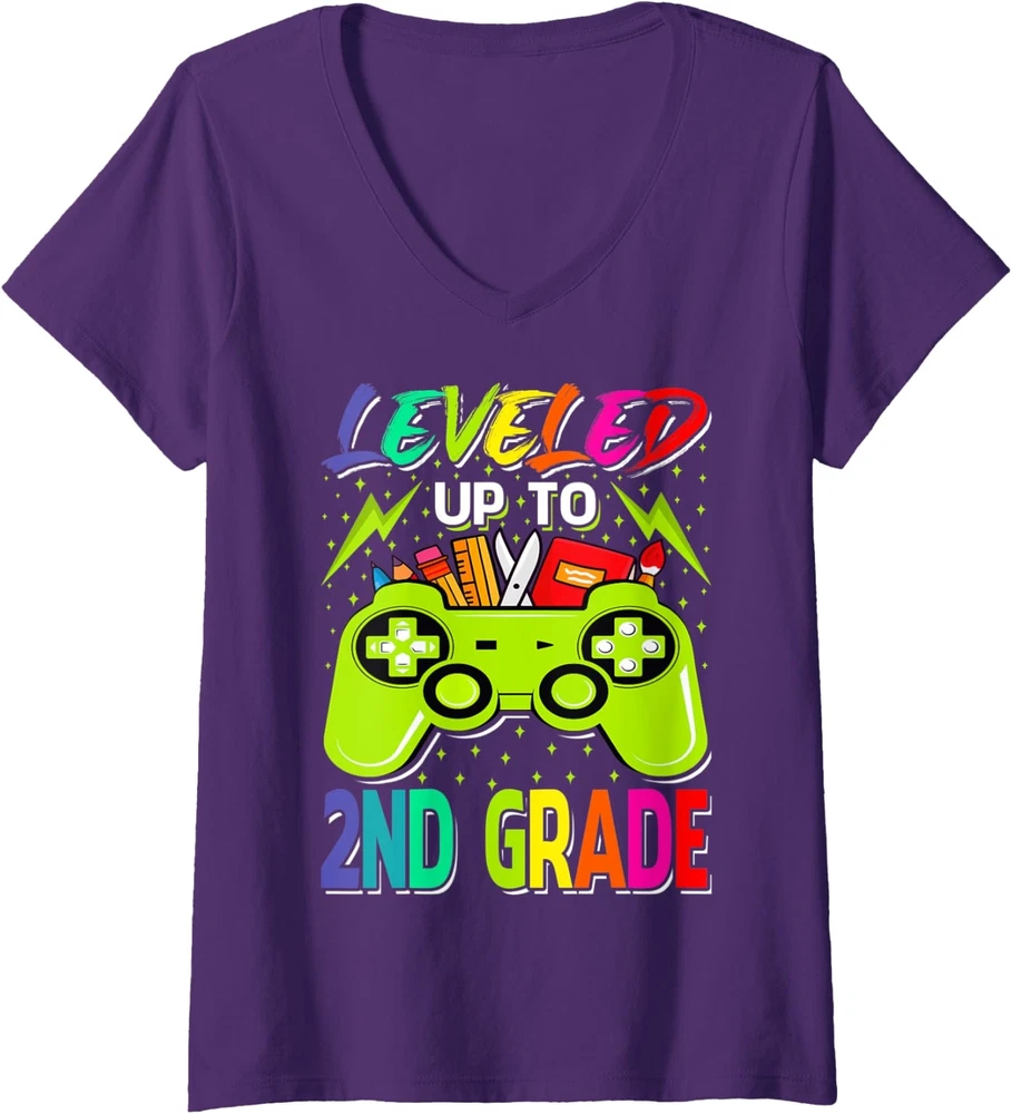 Welcome to Our eBay Shop Fast Shipping Hasslefree Returns Secure Payment Excellent Service Leveled Up To 2nd Grade Gamer Back To School First Product Description All of our t-shirts are brand new and made to order. They are printed in our New York facilities with love and passion. We use various printing methods to ensure you the high quality, long lasting garments you or your loved ones deserve. We carry sizes from Small to 2X-Large in Ladies' Vneck t-shirts (depending on the design). You can refer to "SPECS & SIZING" to get accurate information regarding the sizes of the garments we use. This design is also available and printed on different types of garments in our store.If you would like this graphic printed on a different type of garment than a short sleeve women's v-neck t shirt, please make sure to check our store ! If you have any questions regarding this item or any other item we have for sale, do not hesitate to contact us. We answer all messages within 1 business day. SPECS & SIZING SHIRT CARE TIPS Wash inside out with cold water with similar colors using a gentle cycle. Tumble dry low or hang-dry Avoid using bleach and do not dry clean. PAYMENT We accept payment by any of the following methods: PayPal Please pay as soon as possible after winning an auction, as that will allow us to post your item to you sooner! SHIPPING Your order will be dispatched within 2 business days of receiving payment (Monday-Friday) with a tracking number. In the very unlikely event that your item is lost or damaged during post, then WE are responsible and will issue either a full refund or replacement. RETURNS If you are not 100% satisfied with your purchase, you can return the product and get a full refund or exchange the product for another one, be it similar or not. You can return a product for up to 14 days from the date you purchased it. Any product you return must be in the same condition you received it and in the original packaging. Please keep the receipt. Feedback * Your great positive feedback will be greatly welcomed! * If you have any problem when you receive the item, please contact us first, we'll do our best to resolve the problem!:) Copyright © 2022 | All Rights Reserved