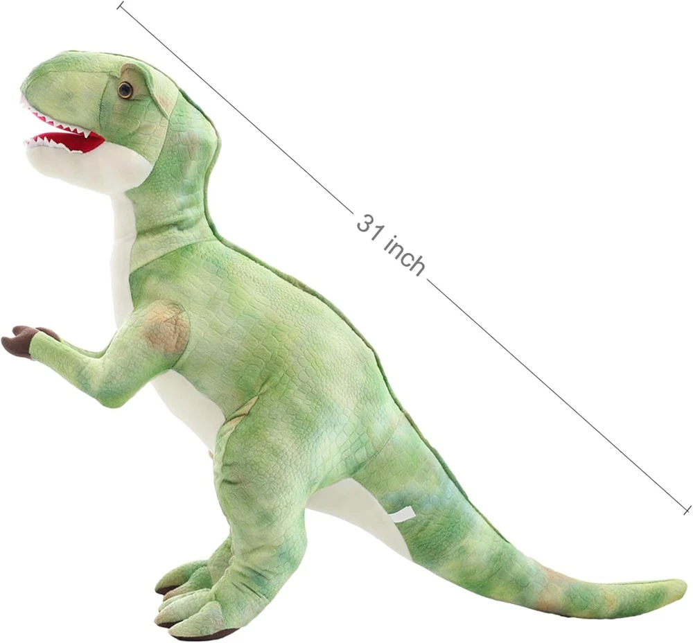 Levenkeness Large T-Rex Plush,Giant Tyrannosaurus Rex Dinosaur Stuffed Animal Toys Gifts for Kids,Christmas 31" Product Details Product Dimensions: 10 x 10 x 24 inches Item Weight: 1.68 pounds Manufacturer recommended age: 3 years and up Manufacturer: Leven ▲The big tyrannosaurus rex dinosaur stuffed animal doll will become a cute companion for children of any age, enhance their interest in animals and enrich their imagination. ▲The cuddly T-Rex plush dinosaur is very realistic, with high quality new fabrics, full of internal filling, standing, very high quality animal plush toys, very adorable and durable. ▲Christmas, kids birthday, the perfect gifts for dinosaur lovers, this green large dinosaur will give your favorite people happiness; party decoration, perfect choice for family gatherings. ▲This 23.6 inch giant t rex plush toy is perfect for hugs, the fabric is soft and comfortable, kids can play with it, sleep with it. It can also be used to pretend games and turn their active imagination into reality. ▲Our big dinosaur toys are easy to clean and are suitable for children over 3 years old. Your newest friend - Tyrannosaurus Rex dinosaur plush stuffed animal toyThe huge size is perfect for hugs and is a good partner for children to realistic shape is like a real dinosaur, which enriches the children's imagination and brings them endless fun.Super soft fabric, eco-friendly, very cuddly toy, is also a good t-rex stuffed animal doll is realistic, environmentally friendly, full of filling, and beautiful in color. It is ideal for children's rooms or homes, party decorations.