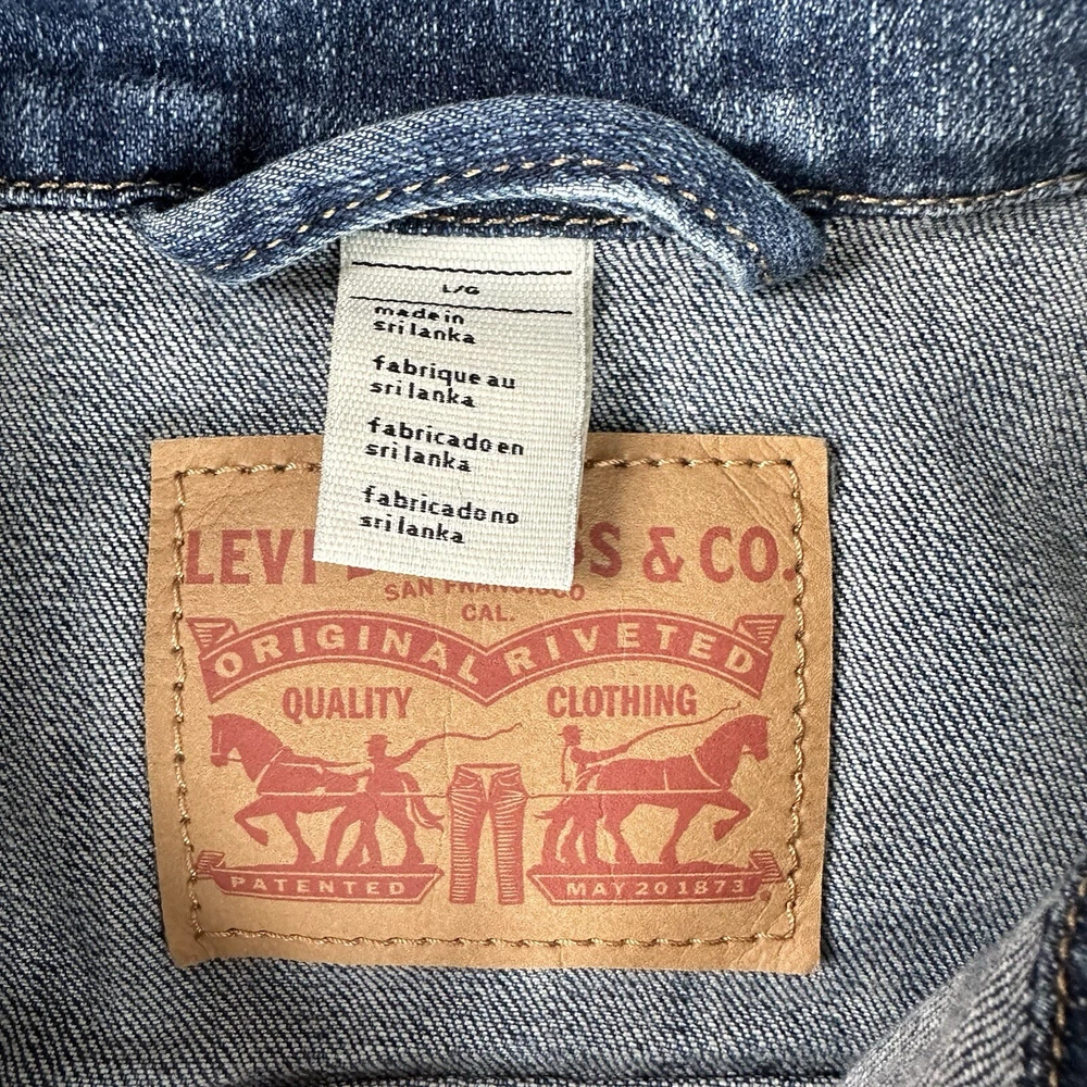 Levi Jacket Womens Blue Denim Trucker Med Wash Long Sleeve Cotton Stretch Sz L