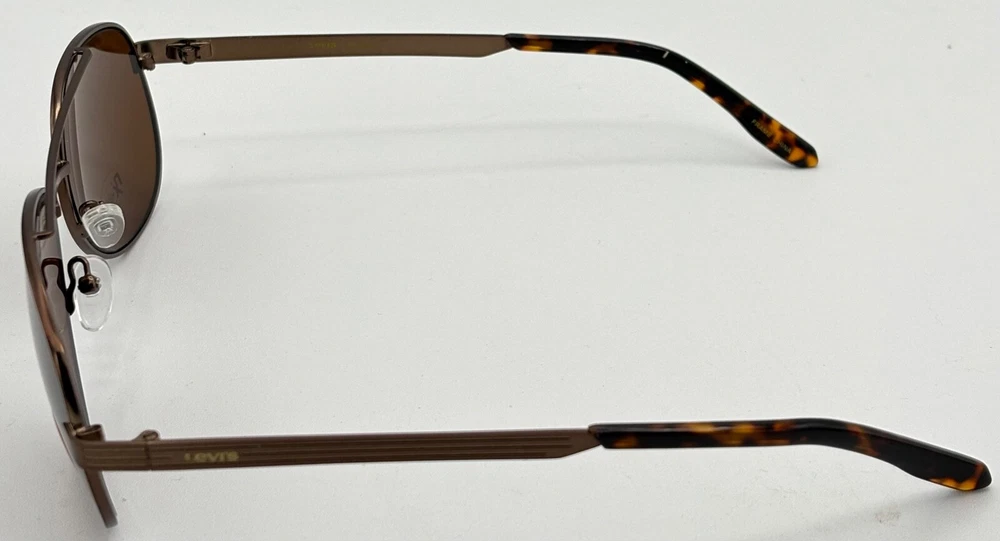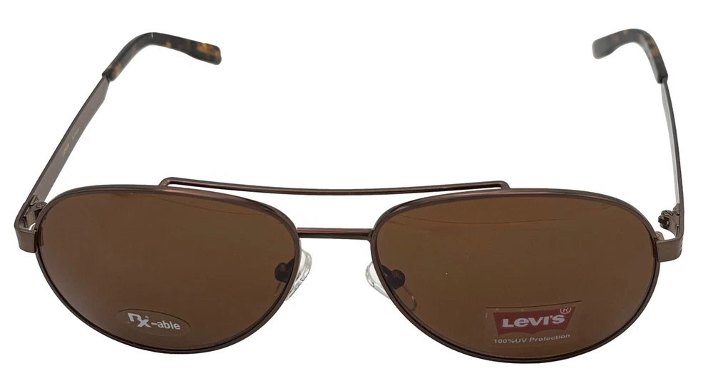 This is brand new Levi Sunglass. , It has full brown plastic temples, Normal retail was about $75.00. Brown Metal Aviator RXable Sunglasses , This comes with a plain black eyewear pouch, Size: 58. 15. 140, Height: 44mm, Tortoise Plastic Temples , Adjustable Plastic Nose Pads , Regular Retail: $75.00 You Pay: $24.99 Brown Gradient Lens, You Pay Only $24.99 Now,