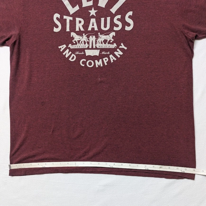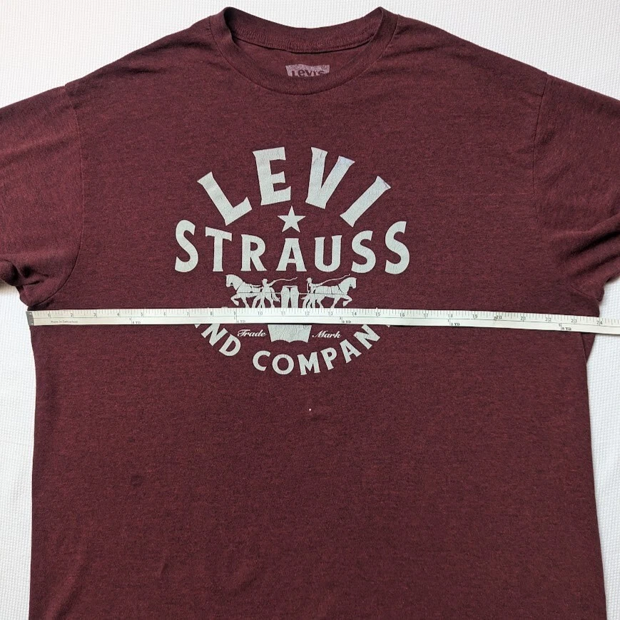 We care that you love the item you have ordered. We have done our best to clean and wash all items. New with tag and Dry Clean only are the only items that have not been washed before sending. We have tried hard to communicate the condition of the item to the best of our ability. This Levi's men's t-shirt features a classic crew neckline and short sleeves, with a maroon color and the iconic Levi's logo as an accent. It is made of a comfortable and breathable microfiber fabric, perfect for all seasons. The shirt is machine washable and easy to care for, with a regular fit and size type. This T-shirt is an ideal addition to any wardrobe, suitable for both casual and formal occasions. Its solid pattern, easy care features, and all-season wearability make it a versatile piece of clothing. The Levi's brand is known for its quality products, and this T-shirt is no exception.