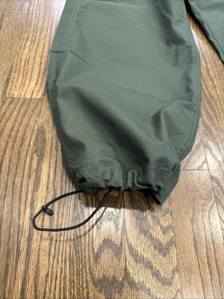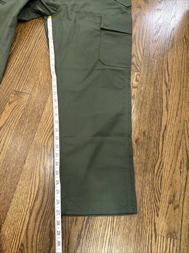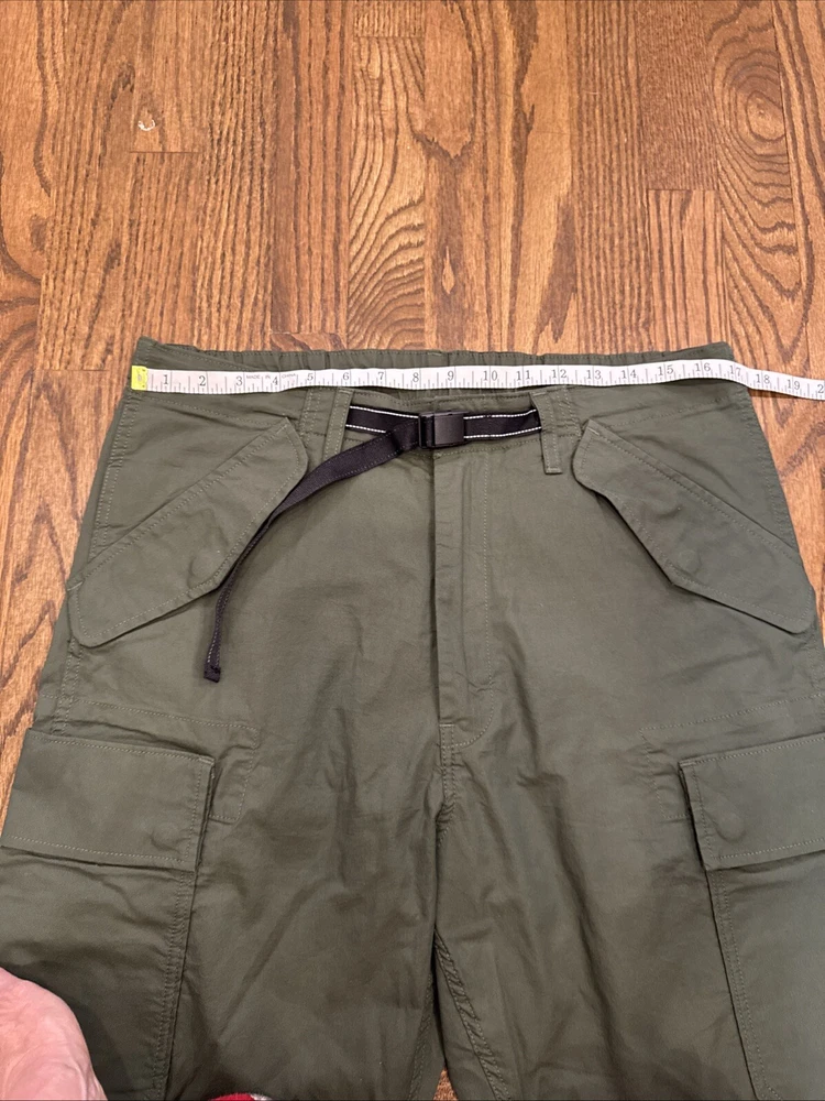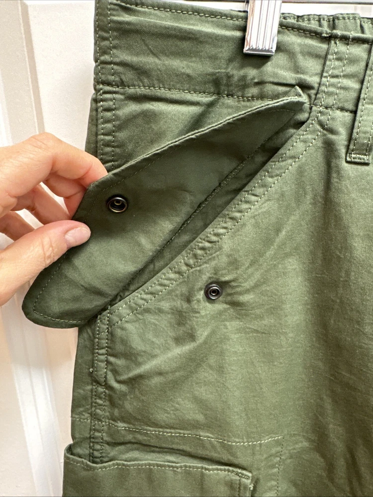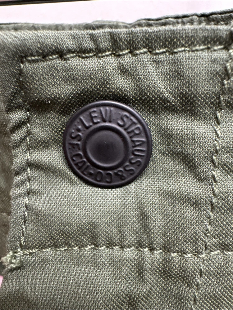 Elevate your wardrobe with these stylish Levi Strauss & Co premium cargo utility pants. Featuring a high rise waist and stretch for ultimate comfort, these pants come in a trendy green color with a straight leg style with optional cinch at ankle. The pants are made of a cotton and stretch blend material and have a zip and snap closure with accents of the brand's logo. The pants have a regular fit and are designed for women with a waist size of 34 inches and inseam of 27 inches. The pants are perfect for those who want to add a touch of style to their wardrobe.