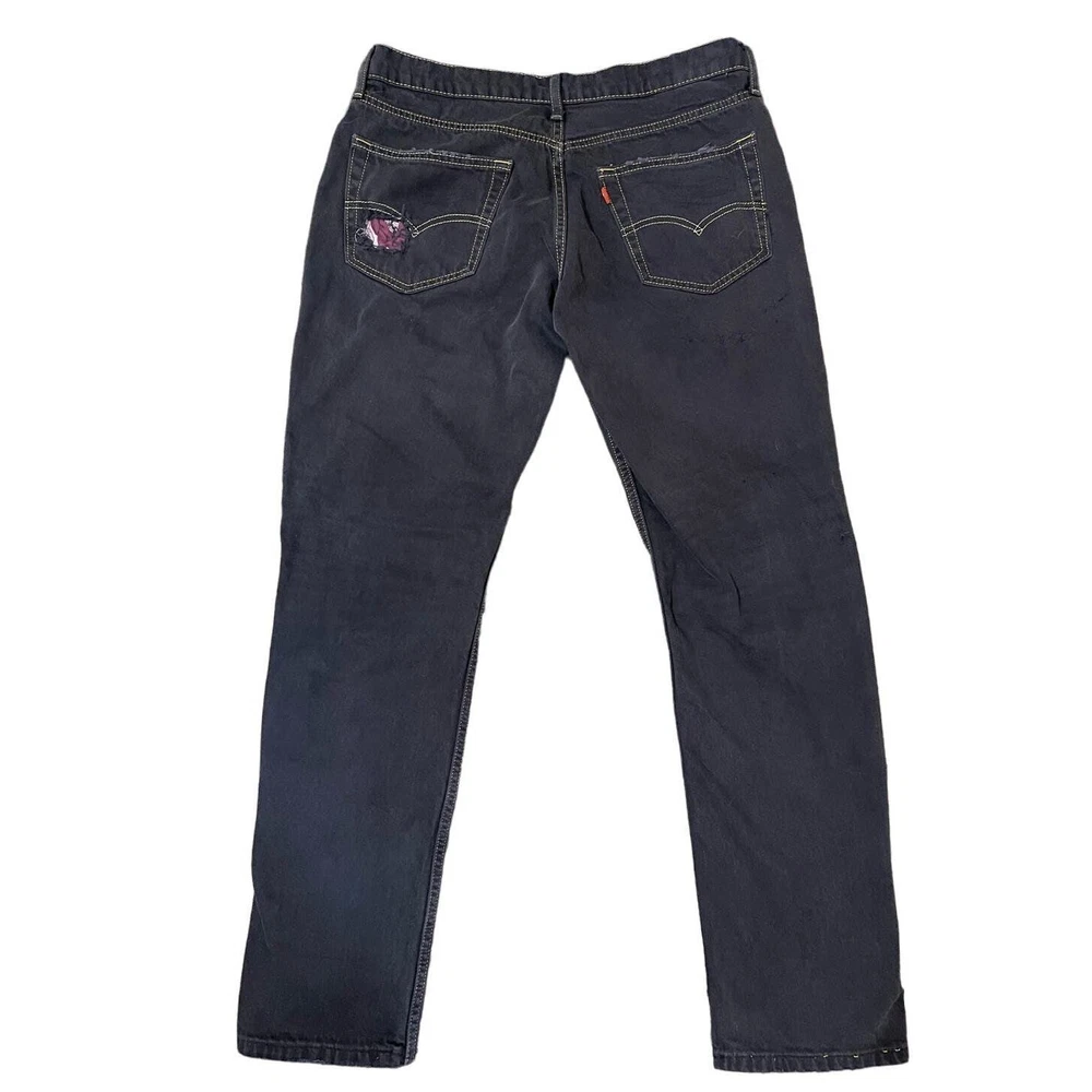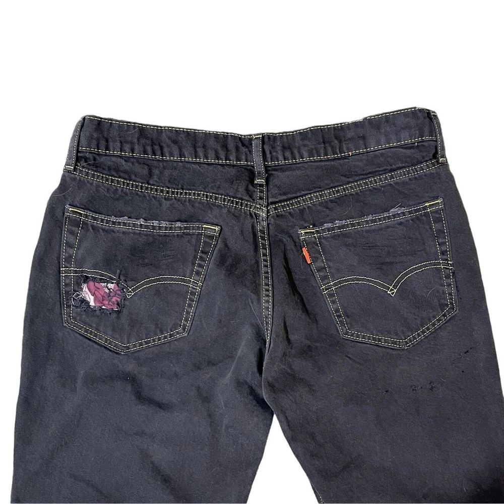 Unique pair of upcycled Levi's Womens Jeans with Patches and heavy distressing! Levi & Strauss Co Jeans Dark Navy Floral patch Rips for a destroyed look! Measurements approximate in inches taken flat: Waist 17/Rise 9.5/Inseam 29.5 Ships same or next day! Bundle for best savings! Thank you for shopping with me!