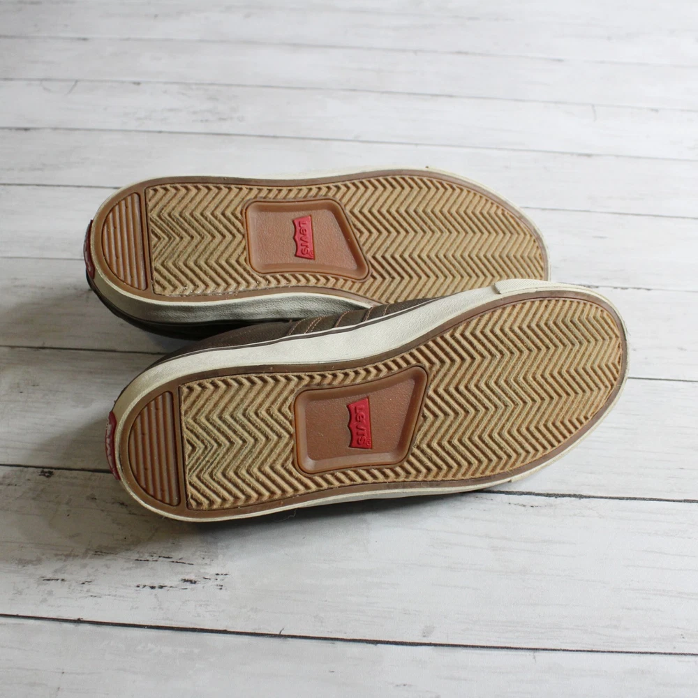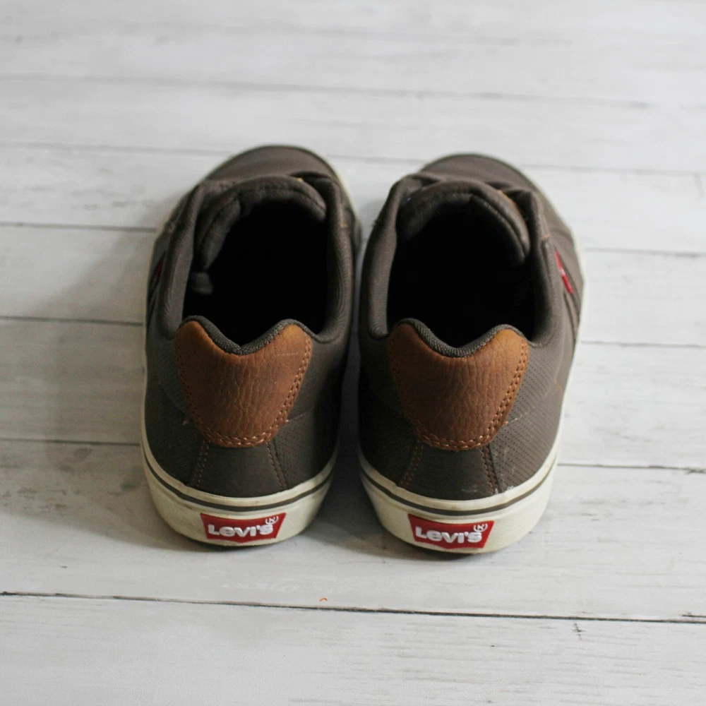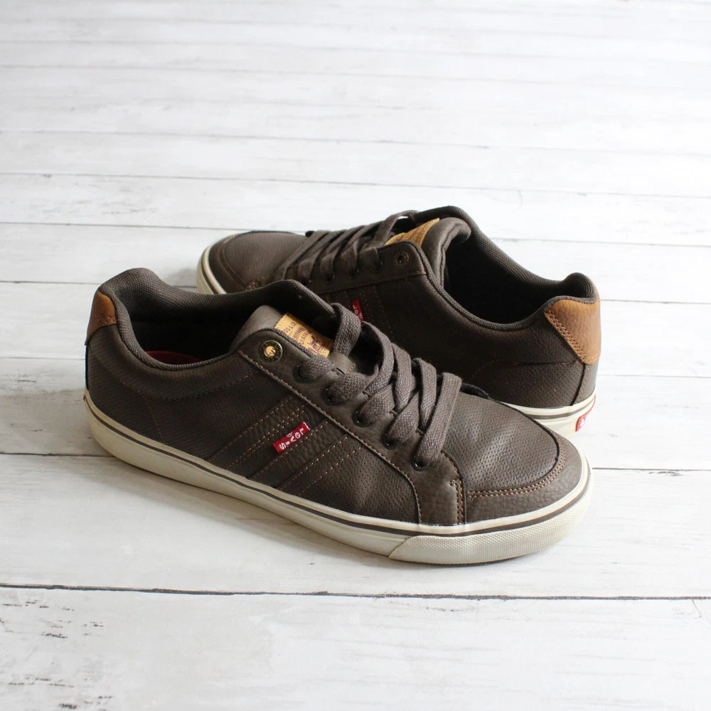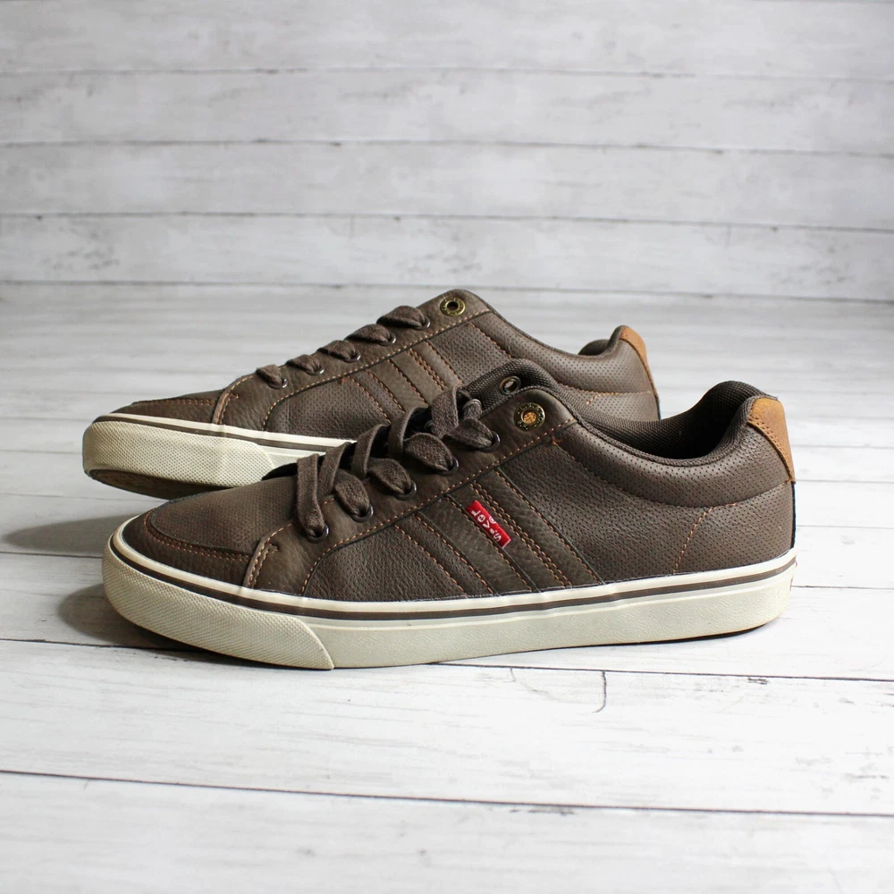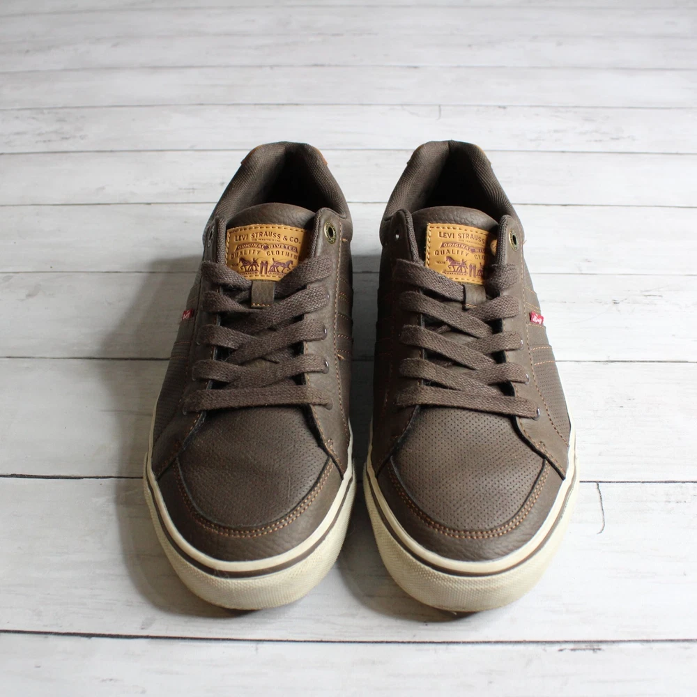 Levi Strauss & Co Casual Shoes Comfort Lace Up Men's Size 8.5 These casual sneakers are cark brown with metal eyelets and brown shoelaces. The outsoles are an off white color. They were only worn a couple of times and are in excellent used condition with very slight smudges/scuffs.