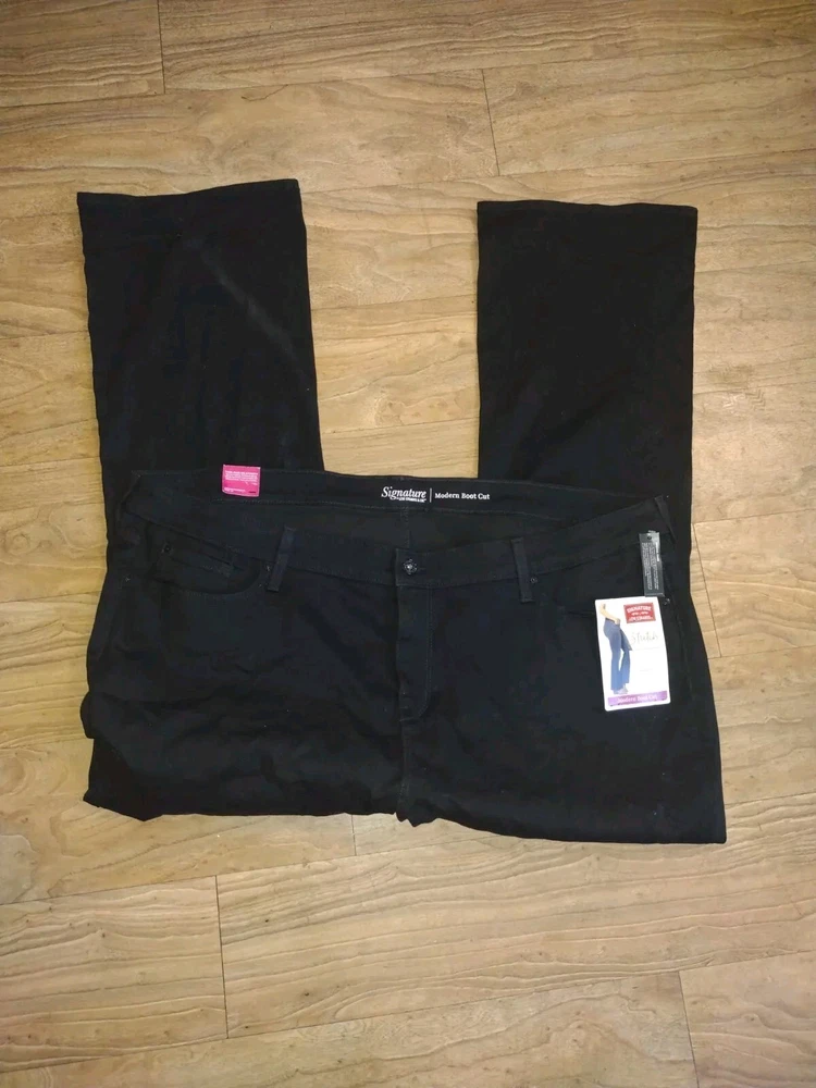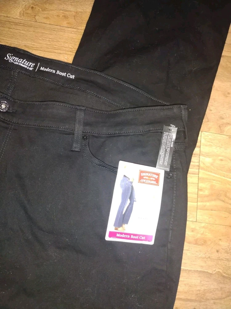 Elevate your style with these Signature Levi Strauss jeans in a modern bootcut style. These black denim jeans are perfect for any occasion and will make you feel confident and stylish. Designed for plus-size women, these jeans come in a size 28 and are brand new with tags. The metal theme adds an edgy touch to these jeans, while the high-quality denim fabric ensures they will last for years to come. Whether you're dressing up or down, these Signature Levi Strauss jeans are a versatile addition to your wardrobe. Don't miss out on this must-have item (EbayIRONS)