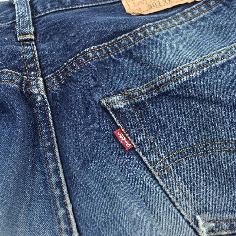 Levi'S Vintage 501Xx 90S Big E Button Back 555 Valencia Factory Patch Remains De