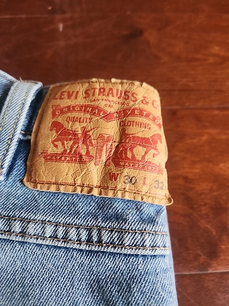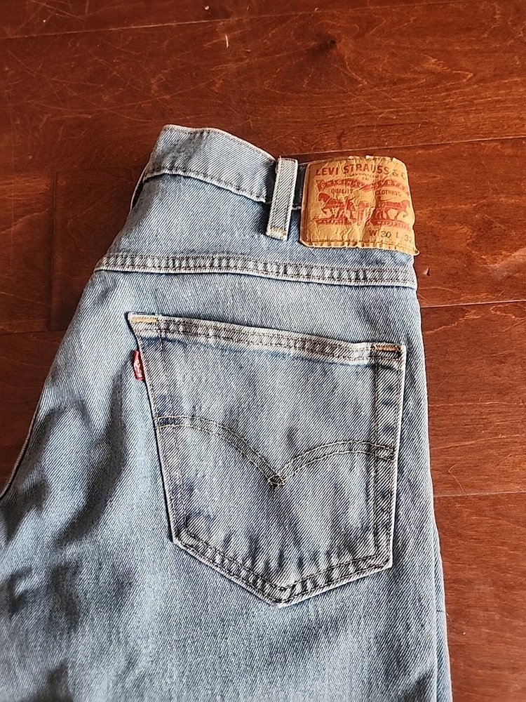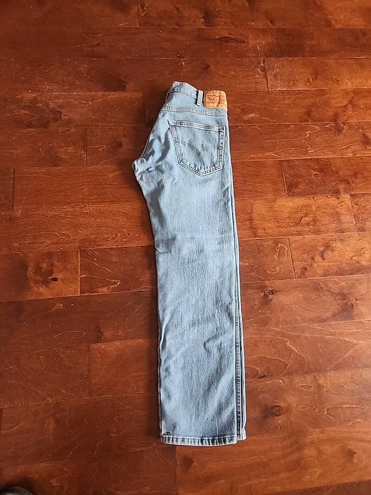 These have been worn once or twice and are practically new. Crafted for comfort without compromising on style, these Levi's Western Fit Jeans in a timeless medium wash are the quintessential addition to any man's wardrobe. The size 30 waist and 32 inseam ensure a relaxed fit that's perfect for various occasions, from casual outings to more polished events. The durable denim blend, featuring cotton, polyester, polyamide, and elastodiene, offers both stretch and easy care, adapting seamlessly to your lifestyle. Details such as the classic straight leg cut, five-pocket design, and signature Levi's accents, including the iconic logo patch and button, embody the jeans' authentic biker, cowboy, and classic American spirit. Machine washable and constructed with a mid-rise waist and a secure zip/button closure, these jeans are a practical choice for every season. Whether you're hitting the town or enjoying a laid-back day, they're sure to become your go-to pair.