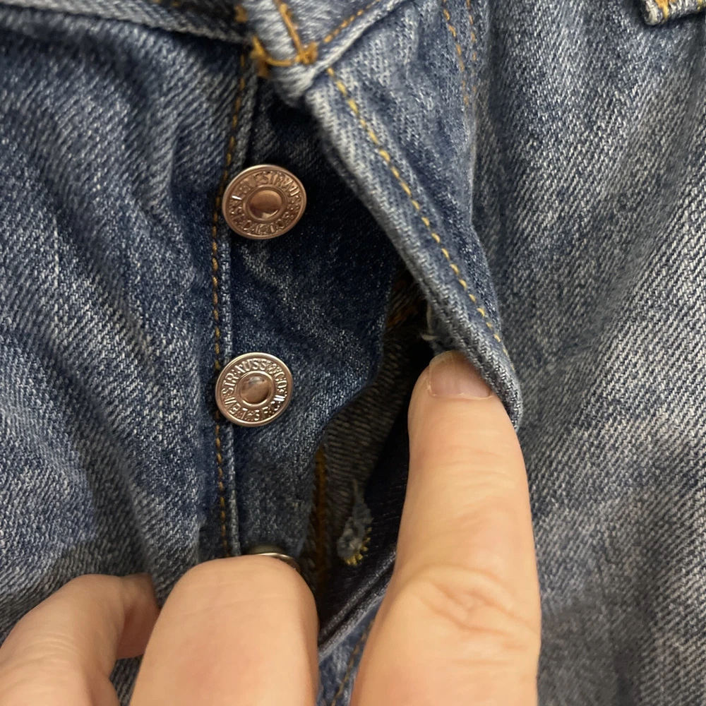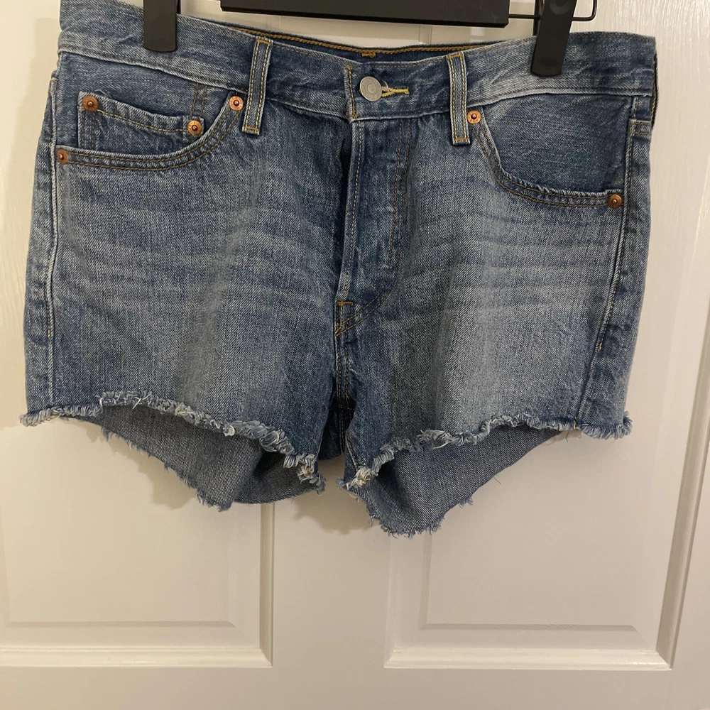 Womens Levi's 501 Jean Shorts. Size 28 Blue Dots. Button Fly/Raw Hem.. Condition is Pre-owned. Shipped with USPS Ground Advantage.
