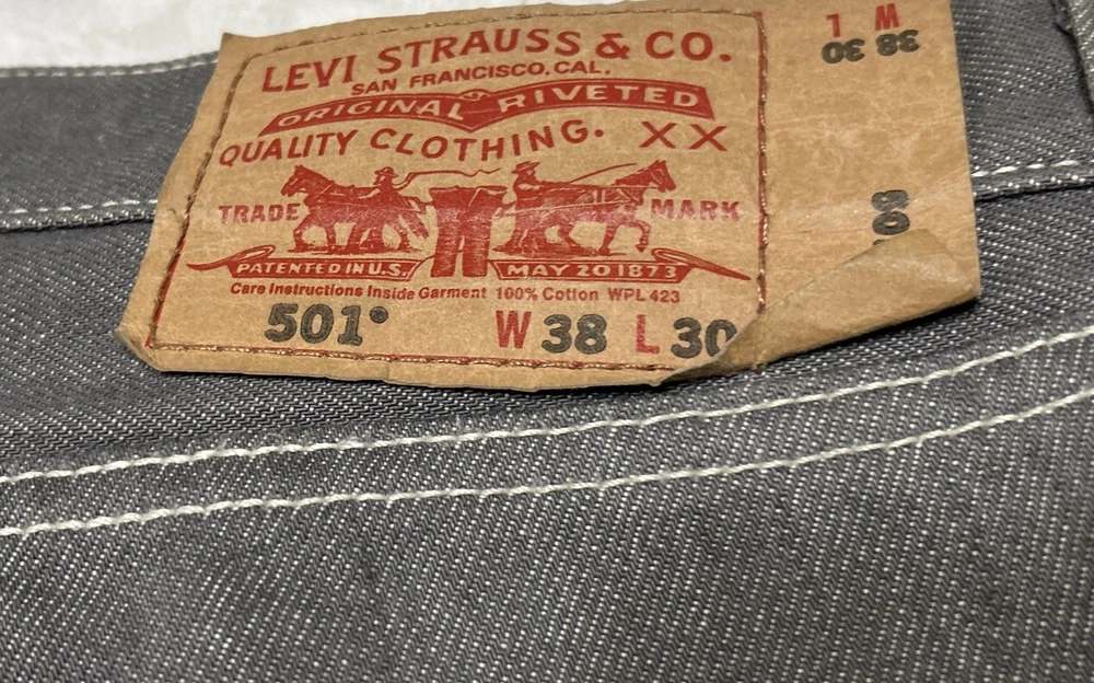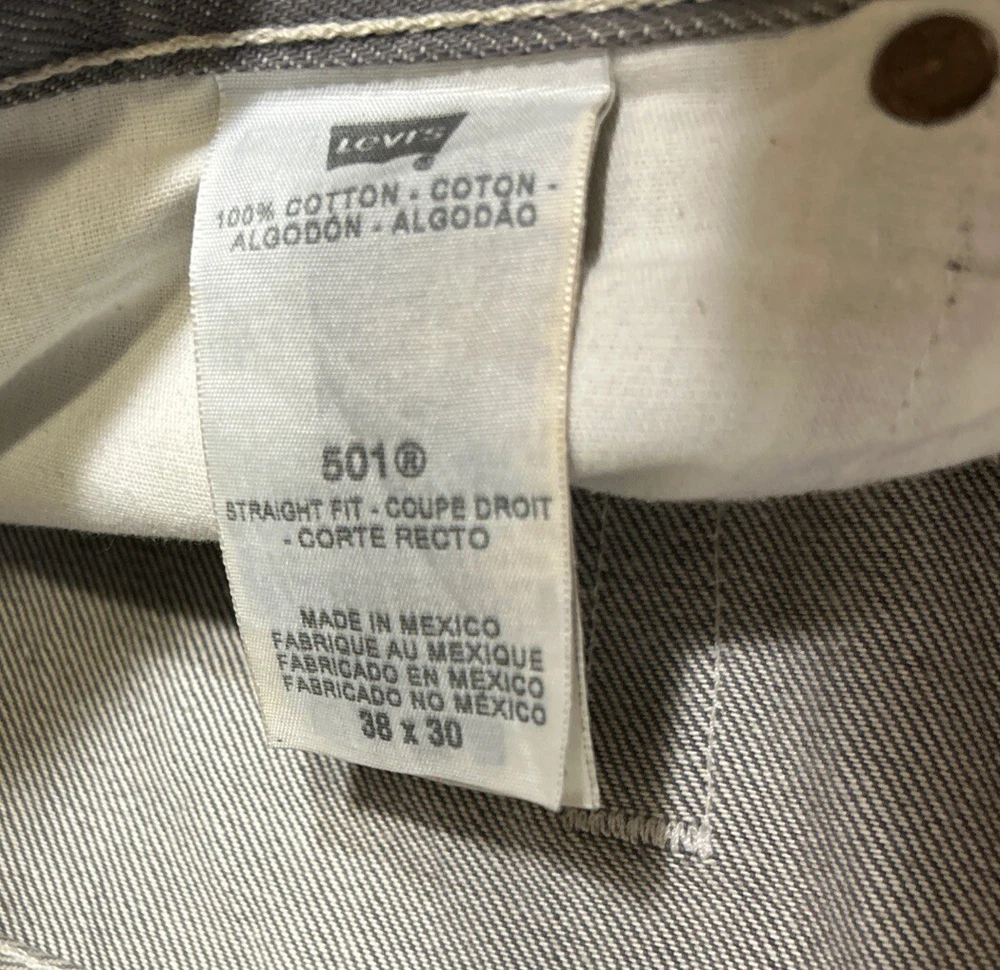 Levis 501 Jeans Mens 38x30 Gray Grey Zip Regular Fit Straight Leg Denim Pants