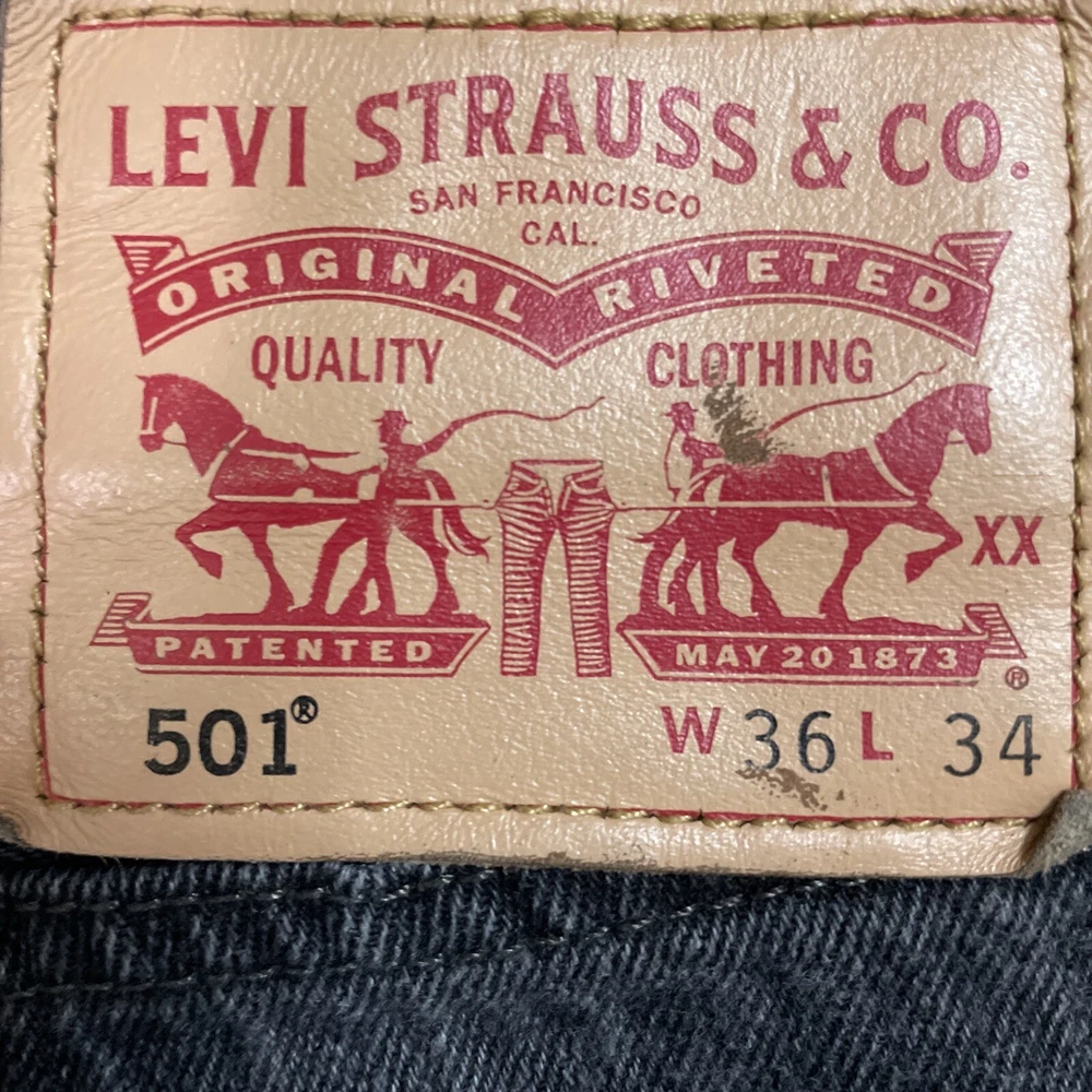 Closure:ButtonStyle:StraightFit:RegularType:JeansFabric Type:DenimFeatures:PocketsSeller Notes:“Great condition, no holes and no major signs of wear.”Waist Size:36 ingtin13:Does not applyFabric Wash:Charcoal WashBrand:Levi'sMaterial:CottonProduct Line:Levi'S 501 SeriesRise:Mid (10-12 in)Size Type:RegularSize:36Vintage:NoUPC:Does not applyModel:Levi's 501Inseam:33 inDepartment:MenColor:Black