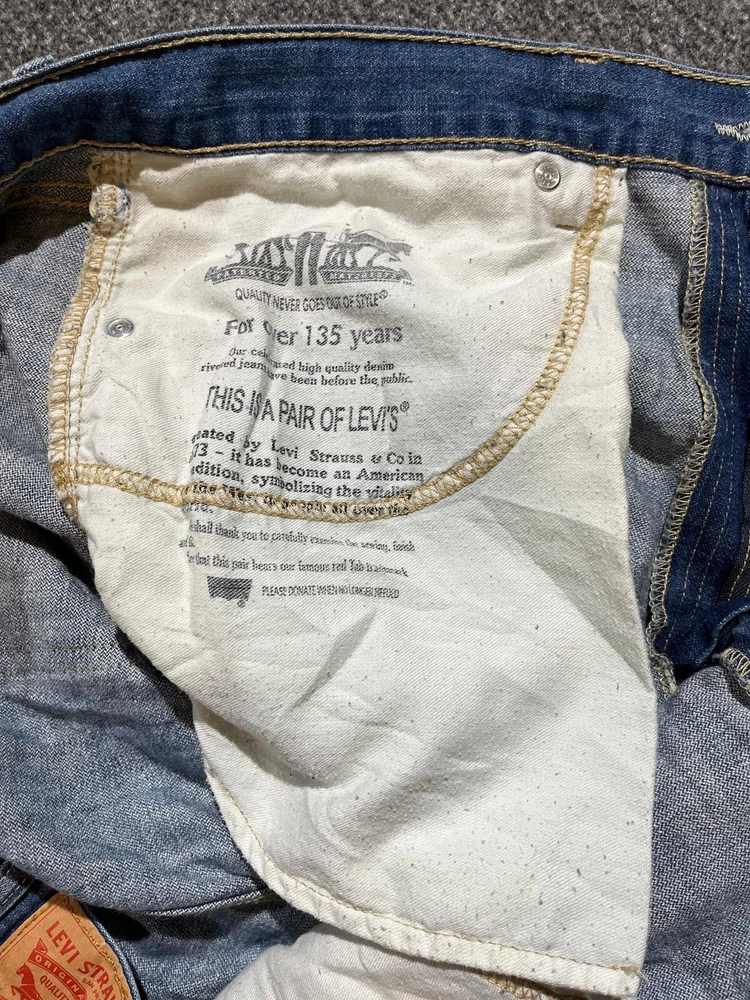 Elevate your denim game with these Levi's 505 jeans. Made with solid cotton denim and featuring a medium wash, these jeans have a regular fit and straight leg design, perfect for any casual occasion. The 5-pocket design includes a button and zip closure, with accents like the Levi's logo and easy care features. These jeans are part of the Levi's 500 series and have a waist size of 38 inches and an inseam of 33 inches, making them a great fit for men who value comfort and style. Whether you're going for a USA-inspired or 80s/90s-themed look, these Levi's 505 jeans are a versatile addition to any wardrobe.