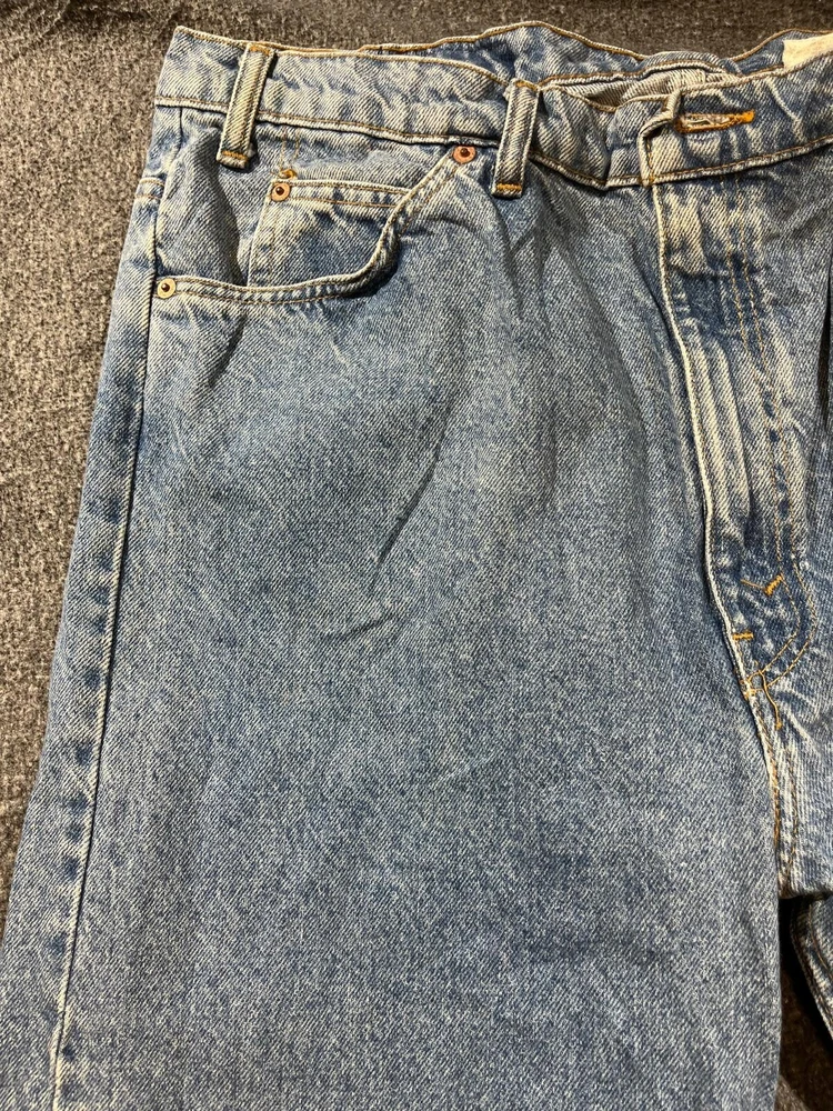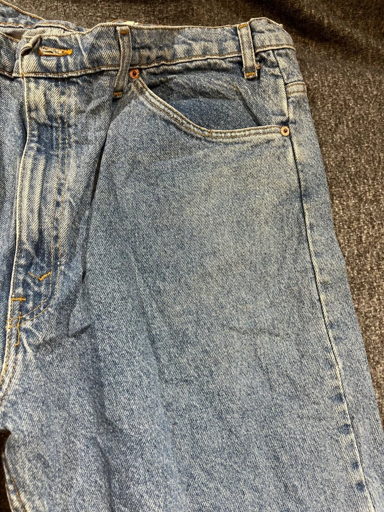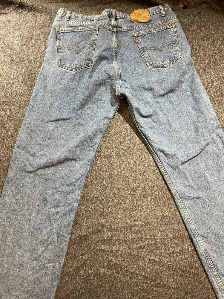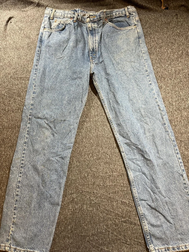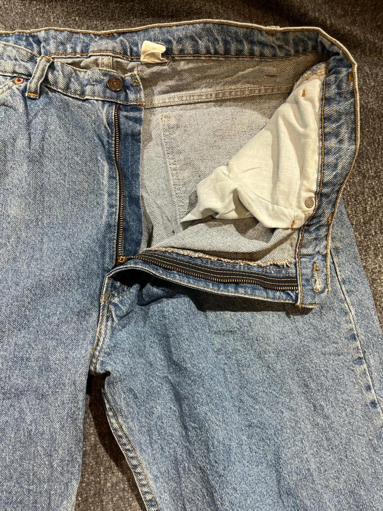 Get your hands on these classic Levi's 505 denim jeans, perfect for any occasion. With a solid blue color and straight leg fit, these jeans feature a 5-pocket design with a zip and button closure. The cotton denim fabric is easy to care for and provides comfort throughout the day. These jeans are part of the Levi's 500 series and have a medium wash, making them a versatile addition to any wardrobe. The waist size is 40 inches and the inseam is 30 inches, making them a great fit for men of all sizes. The Levi's brand logo is accented with button and zipper details, adding a touch of style to these timeless jeans.