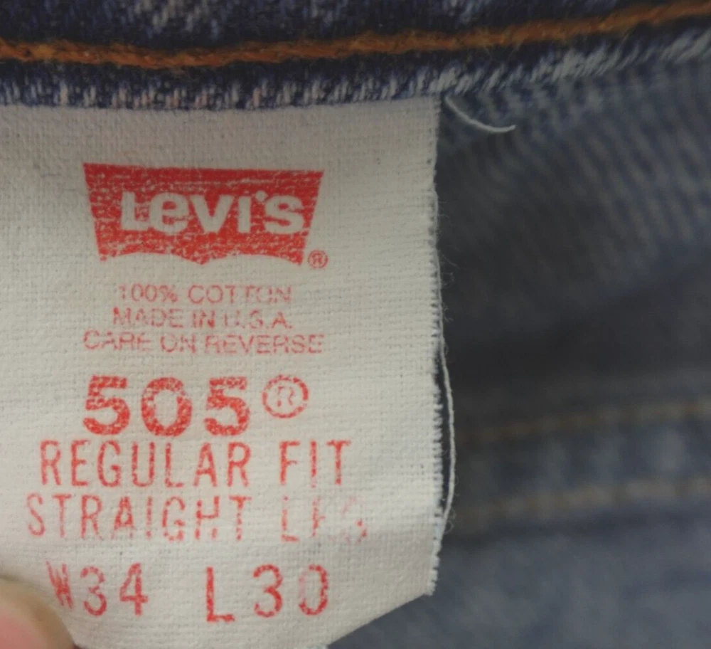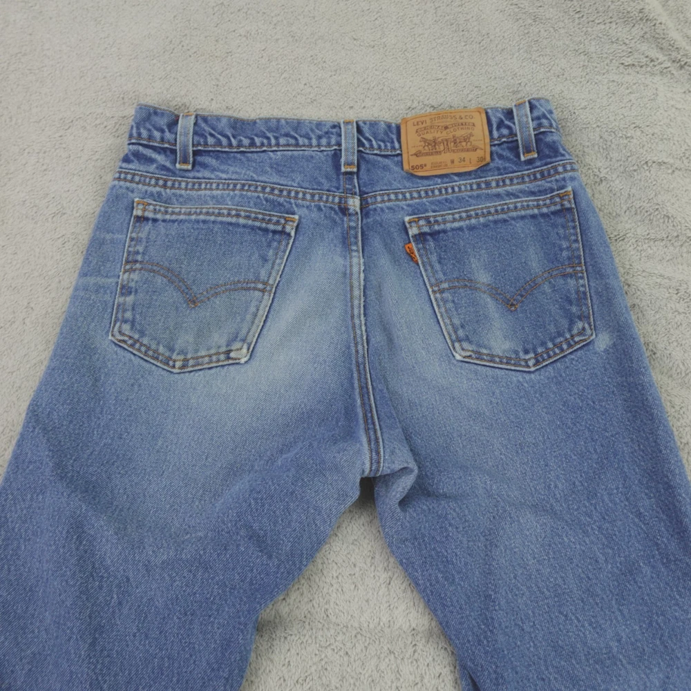 Levis 505 Jeans 34x30 Vintage 90s Orange Tab USA Made. Great worn in character. Jeans are in good pre-owned condition, freshly laundered, very minor staining is noted in a few places as pictured, no other stains, tears, or signs of wear noted, please review all photos. Note, jeans are tagged a size 34x30, actual measurements are 32x28 inches, please see photos for measurements to ensure best fit. If we missed something, don't worry, we offer free returns. Just indicate, "just didn't like it," for any reason, and we'll pay for the return. Thanks for visiting!