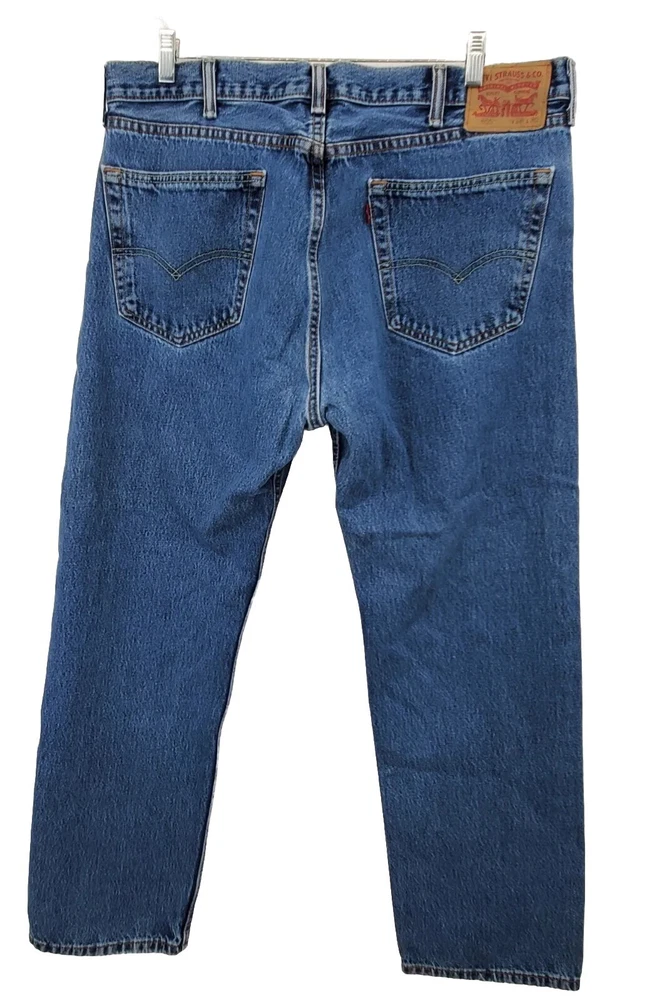 Levis 505 Jeans Men Size 38x30 High Rise Great Condition. The tag on the inside is missing, but I believe they are made of 100% cotton, they feel quite durable. the tag on the back does show some wear, please see the pictures. Please check measurements as preowned item measurements may vary. The waist measurement is 40 1 /2 inches, the rise is 13 and the inseam is 30 inches. If you have any questions, please ask before you purchase and I do combine shipping.