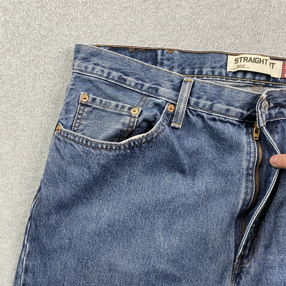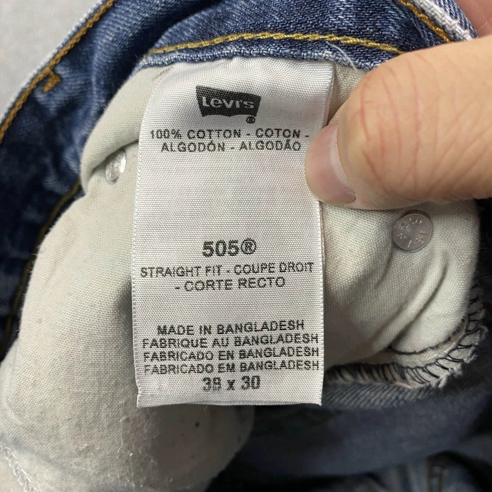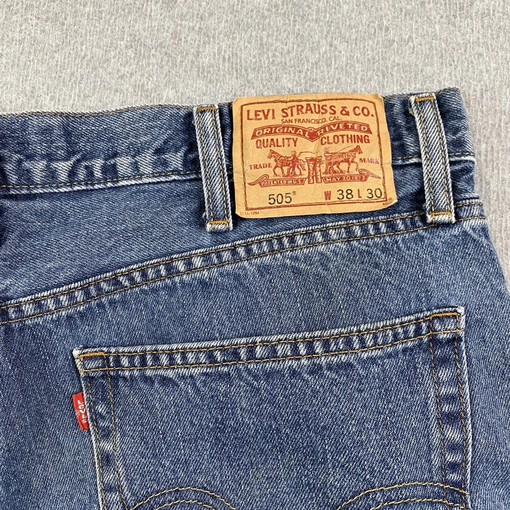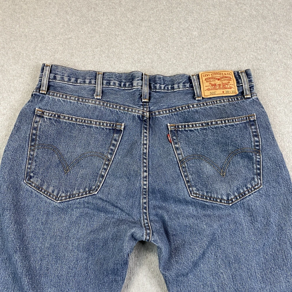 Pocket Type: 5-Pocket Design Pattern: Solid Seller Notes: “Item is in used condition with no holes or stains.” Size: 38 UPC: Does not apply Department: Men Style: Straight Theme: City, College, Cowboy, Grunge, Preppy, Southwestern, USA, Classic, American, Dad, Workwear, streetwear, western, america Vintage: No Garment Care: Machine Washable Fit: Regular Material: Cotton Waist Size: 38 in Fabric Type: Denim Model: Levi's 505 Features: Comfort, Easy Care gtin13: Does not apply Size Type: Regular Fabric Wash: Medium Brand: Levi's Type: Jeans Accents: Button, Logo, Zipper Country/Region of Manufacture: Bangladesh Rise: Mid (10-12 in) Suspender Buttons/Belt Loops: Belt Loops Color: Blue Product Line: Levi's 500 Series Closure: Zip Inseam: 30 in Season: Fall, Spring, Summer, Winter