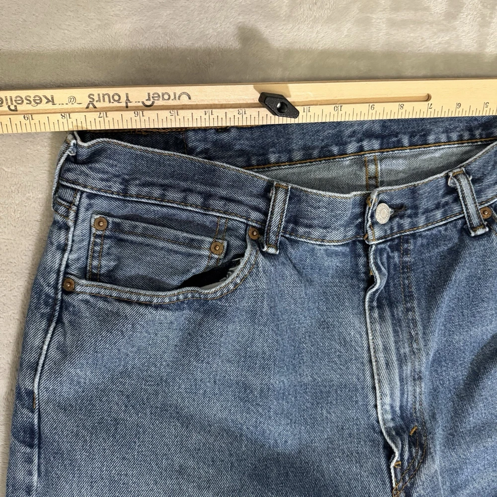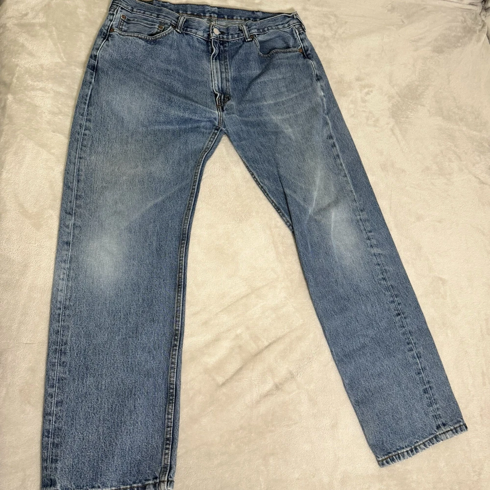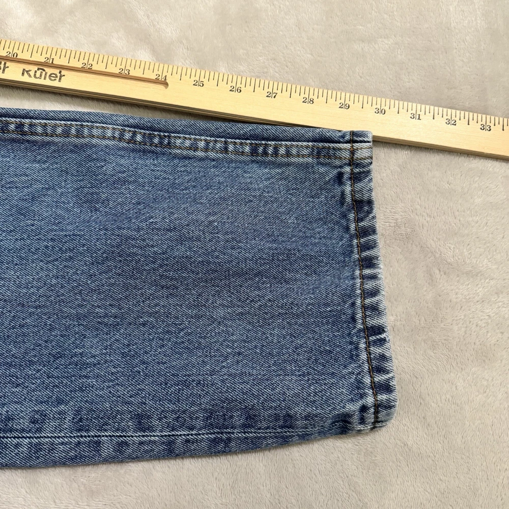 Elevate your denim game with these Levi's 505 jeans, featuring a solid blue color and a straight leg fit. The zip closure and button accents add a touch of retro flair, while the elastodiene and cotton fabric provide comfort and stretch. These jeans are perfect for any occasion, from a casual day out to a night on the town. The mid-rise fit and regular size type make them a versatile addition to any wardrobe, and the easy care and pockets features ensure a hassle-free wear. These Levi's 505 jeans are part of the Levi's 500 series and are a must-have for any fan of 90s grunge or cowboy style.