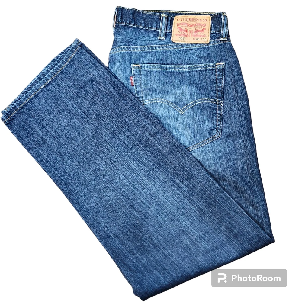 Levi's Jeans Blue Denim 100% Cotton Tag Size 40x30 - see measurements Excellent Used Condition - see photos Measurements: Waist (laying flat) 20" Inseam 30" Leg Opening 9" Front Rise 12" Please keep in mind the colors may vary slightly from the light and photograph. If you have questions please ask! Thanks and have fun shopping!! In GOD we trust!!