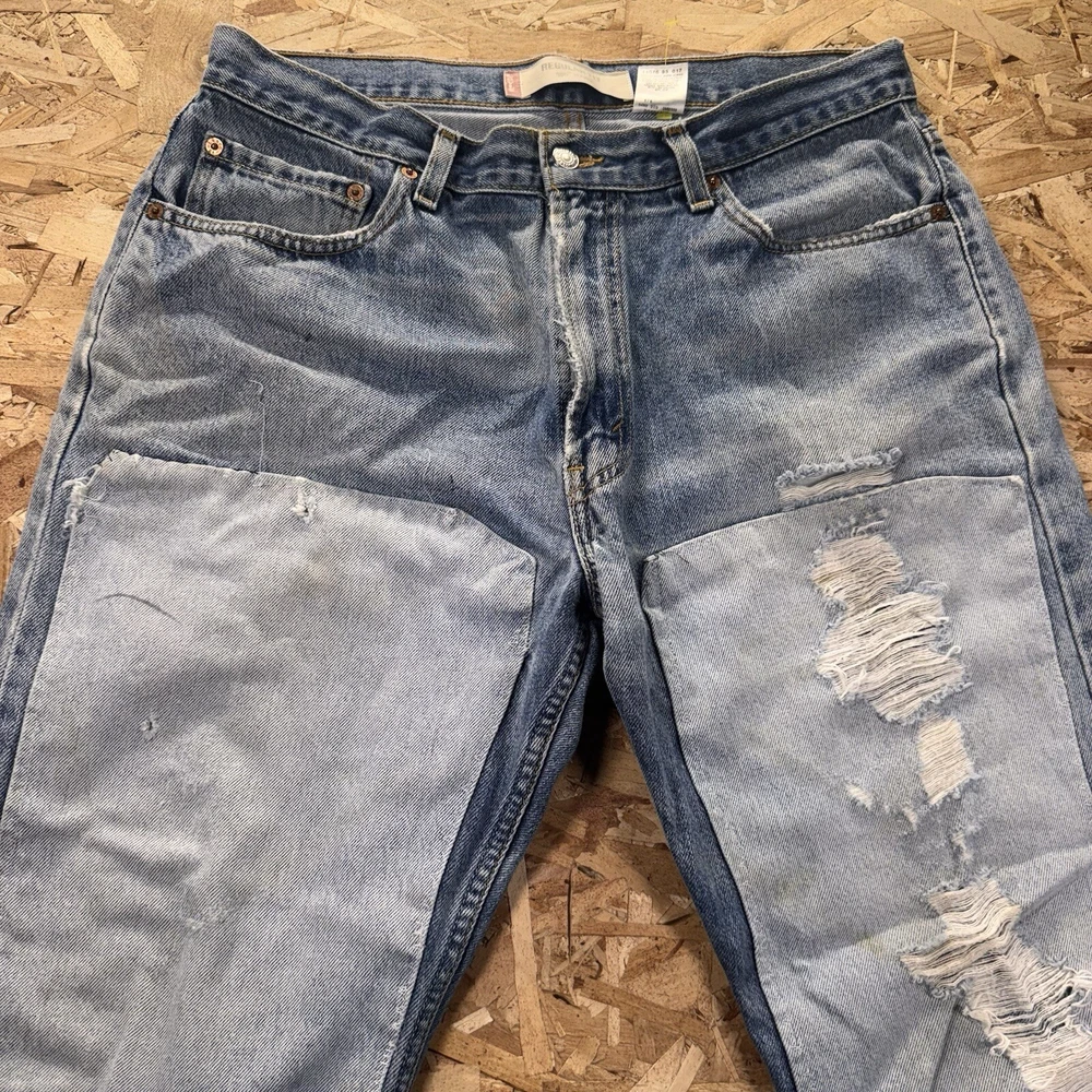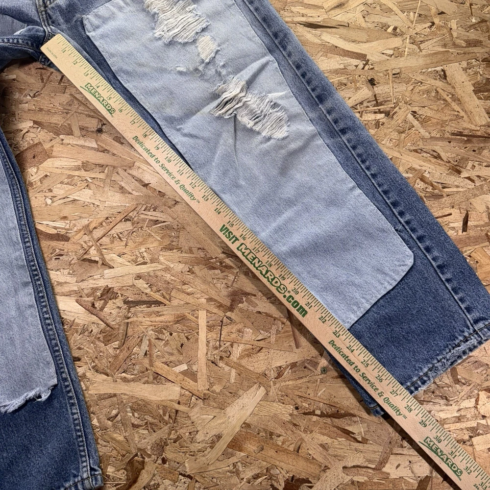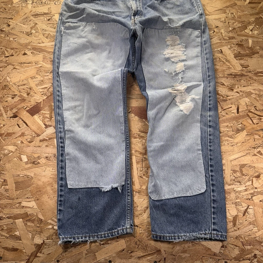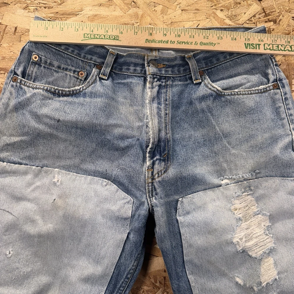 Thrashed with double knee patches. Various areas are perfectly distressed. See pics for all measurements