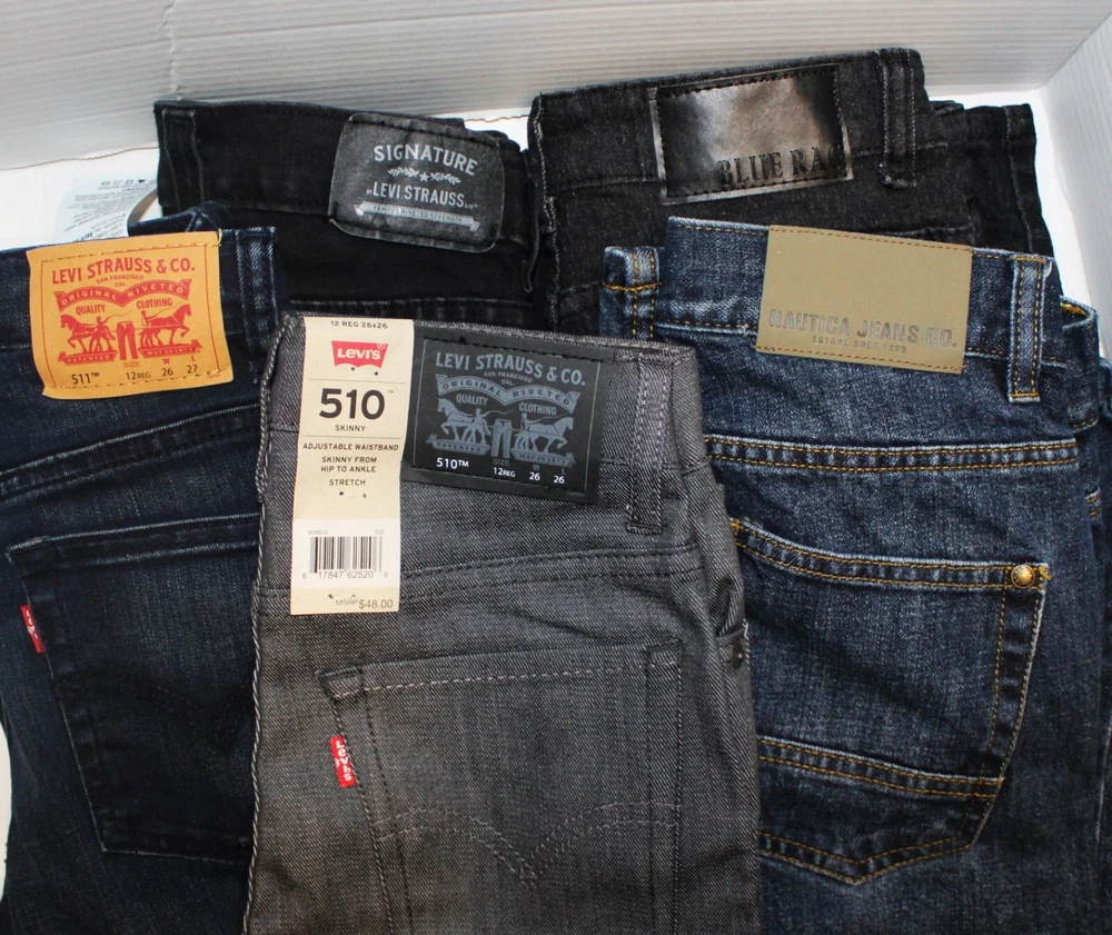 Department: Boys Occasion: Activewear, Casual, Party, Travel Theme: NA Waist Size: Varies Pattern: Solid Closure: Button, Snap Button Size: Varies Material: Denim Handmade: No Type: Jeans Character: Boy Model: Levi's 510&511 Levi Sighature,Blue Rag, Nautica Season: Fall, Spring, Summer, Winter Character Family: NA Fabric Type: Denim Garment Care: Machine Washable Features: Adjustable Waist, Pockets, Stretch, Regular Fit MPN: NA Inseam: Varies Fabric Wash: Acid Washed, Regular Solid Vintage: No Performance/Activity: Hiking, School, Walking Style: Skinny Brand: Levi's 510, Nautica, Blue Rag, Levi's Signature 511 Seller Notes: “New With Tag and Without Tag Levi's As Well As Gently Used Pre-owned Prices Vary” Occasions: Christmas, Birthday's, Valentines Day, School, Photo's Fit: Skinny, Slim,Regular