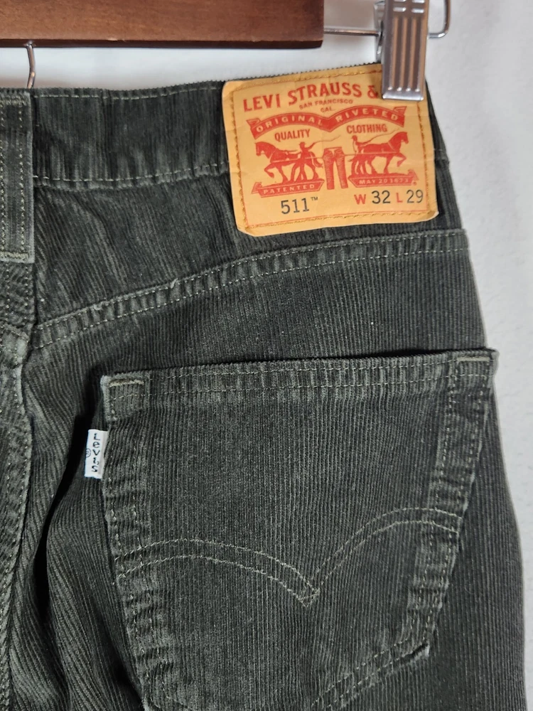 Levis 511 Pants Mens Size 32x39 Green Fit Corduroy Cotton White Tag Trousers Please see pictures for measurements. Thanks for looking!