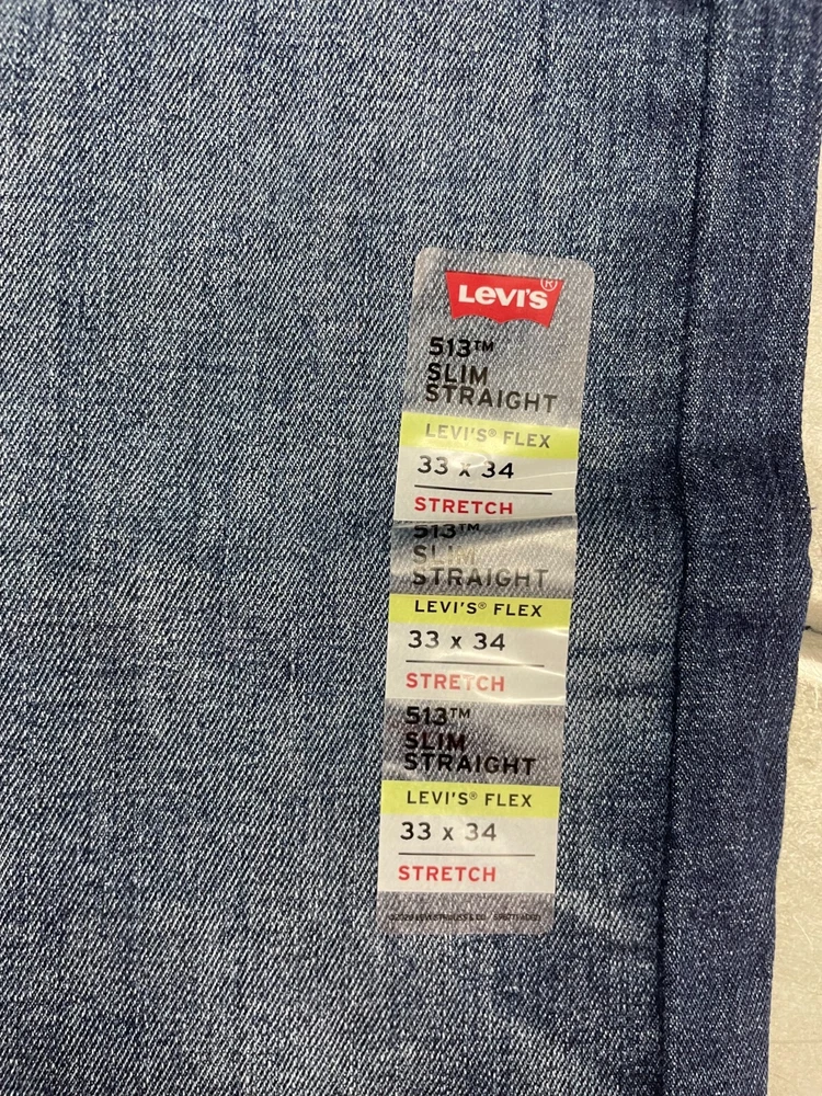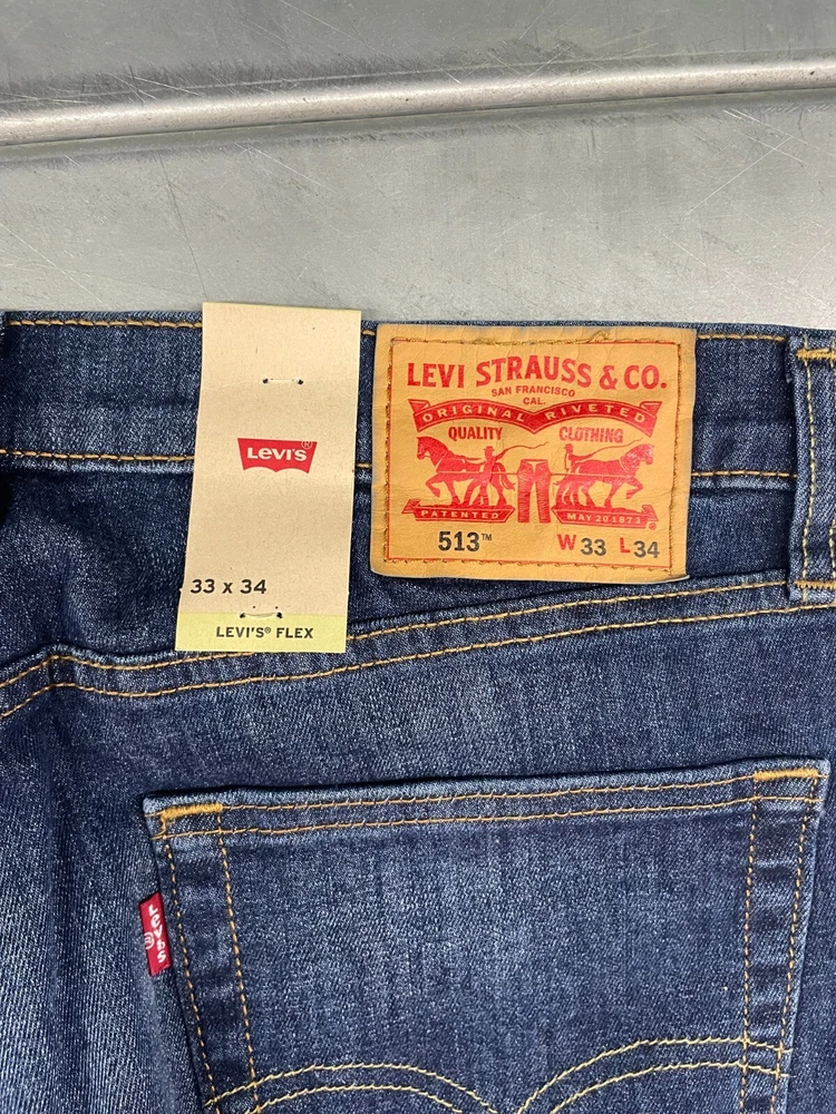 Levis 513 Slim Straight Jeans Mens 33x34 Blue Stretch NWT 5-Pocket Design, Mid Rise Measurements: Waist across front approx: 17 Inches Flat Lay Inseam approx: 33.5 Inches Flat Lay NWT please see pic for details and measurements Z9