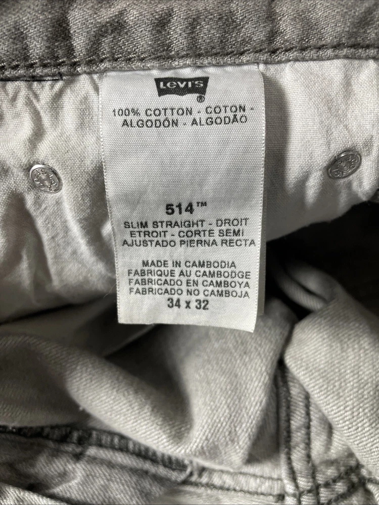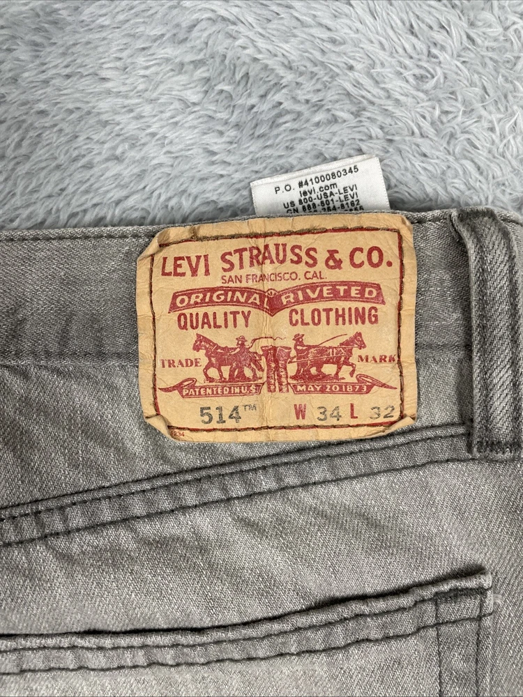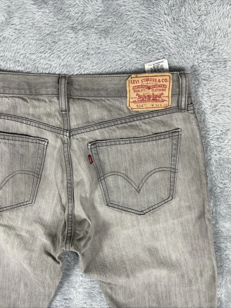 Levis 514 Jeans Men's 34x32* TAG Gray Slim Straight 100% Cotton Pants Tag size is - 34 x 32 *ACTUAL measures are* - ~33 x 32 See photos for actual measurements. Condition is used: Good used condition with typical wear. Please look carefully at all photos. The photos are an important part of the description. If you have questions, please ask. Returns are accepted within 30 days of purchase. The item must be returned in exactly the same condition as received. Items will be inspected, serial numbers checked, etc. Shipping fees are not refundable.