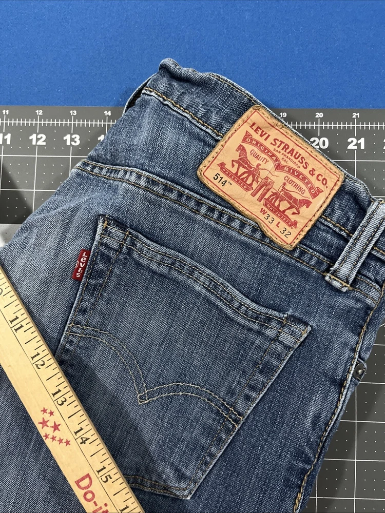 Levi’s 514 Straight Fit Jeans Mens 33x32 Blue Fade 98/2 Stretch Denim Wallet