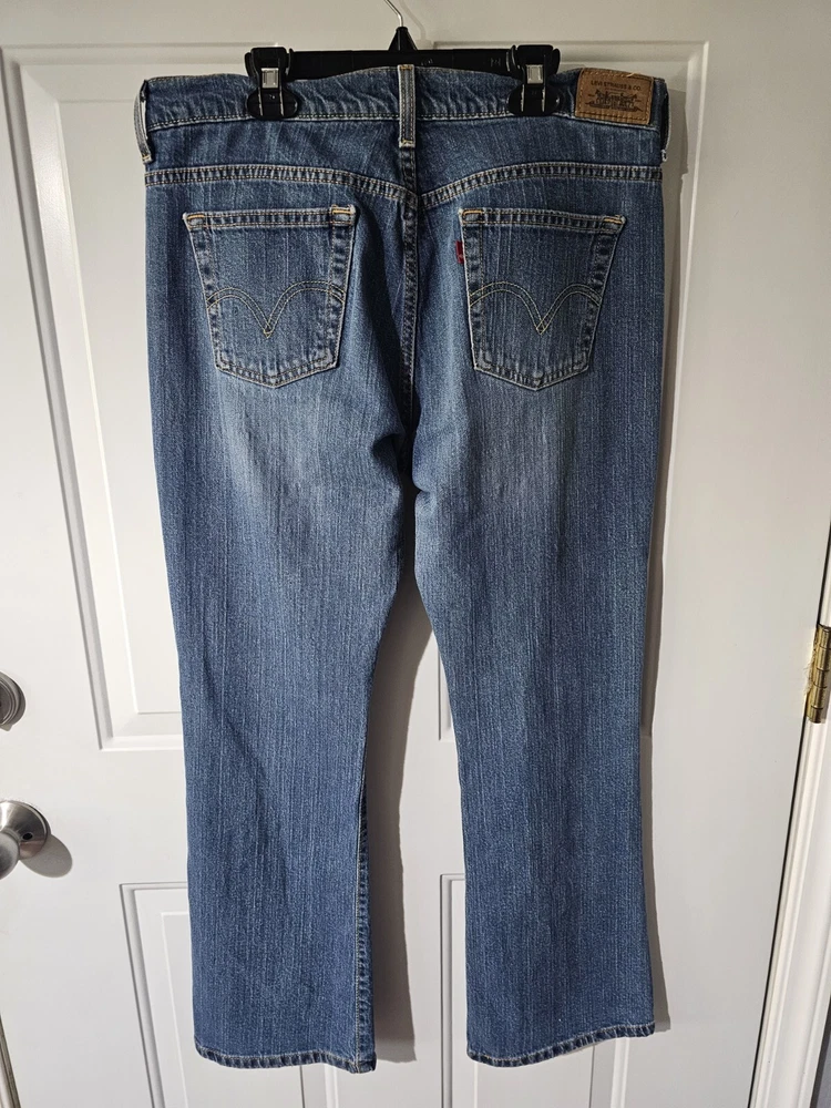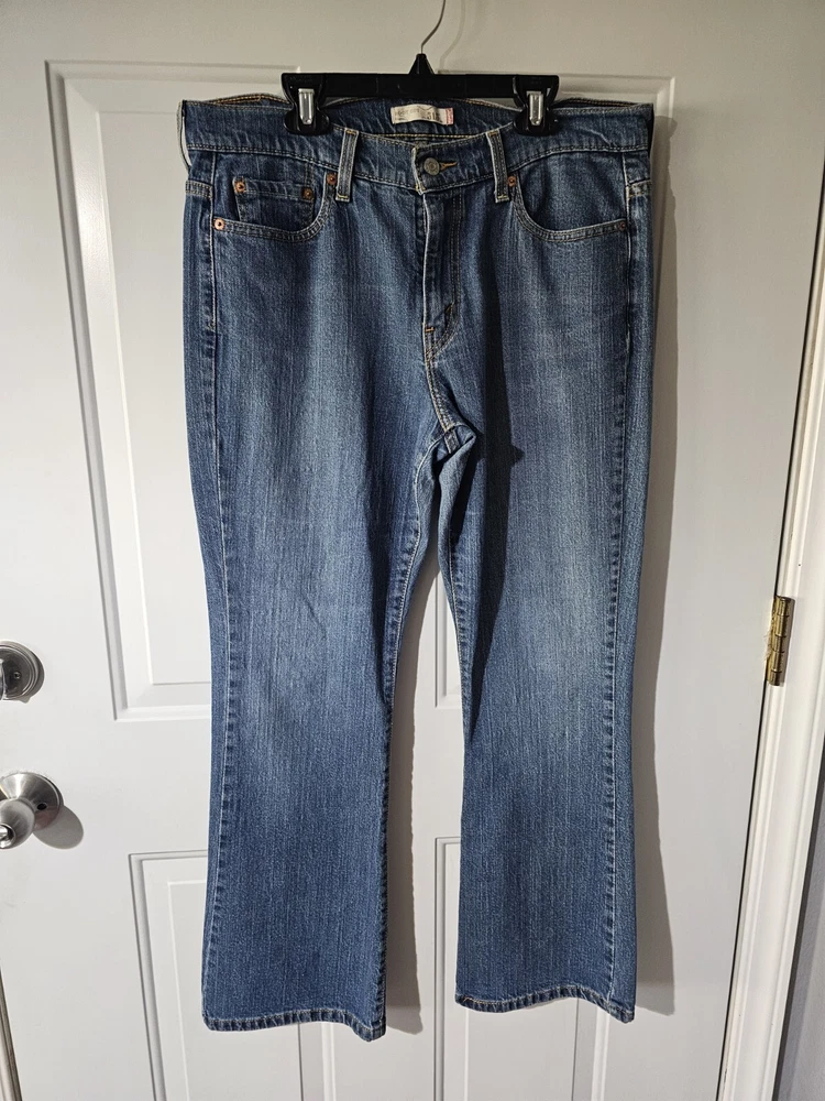 Elevate your wardrobe with these stylish Levi's 515 boot cut jeans in medium wash. Perfect for any season, these jeans feature a solid pattern and a 5-pocket design for ample storage space. The zip closure and belt loops make them easy to wear and the mid-rise fit ensures a comfortable and flattering look. Crafted from high-quality denim fabric, these jeans are machine washable for easy care. With a waist size of 34 inches and an inseam of 28 inches, they are a great fit for women's size 12. These Levi's 515 boot cut jeans are a must-have for any fashion-forward woman looking to add a versatile and stylish pair of jeans to her collection.