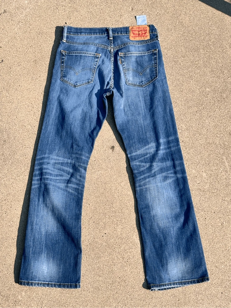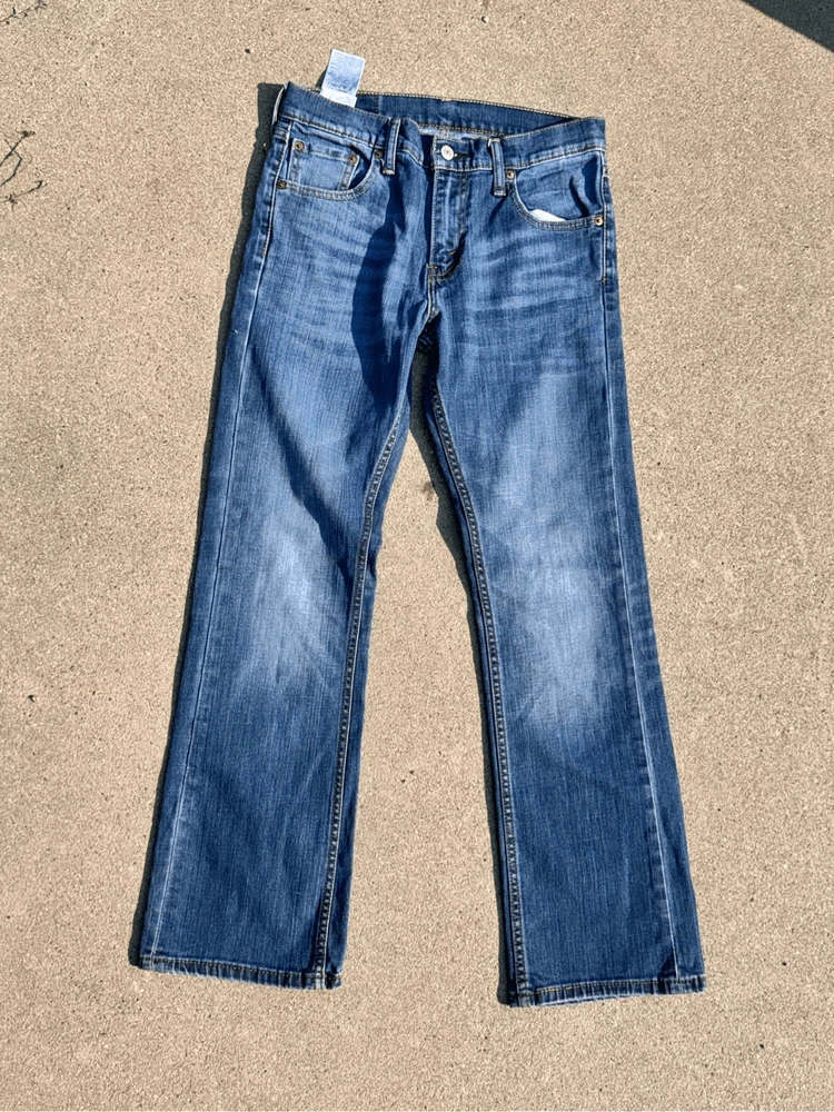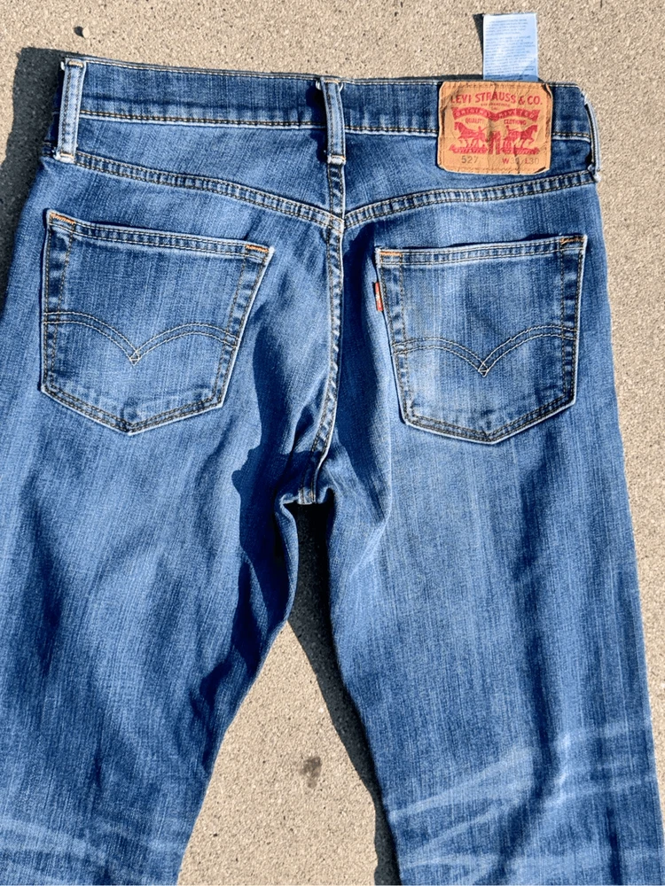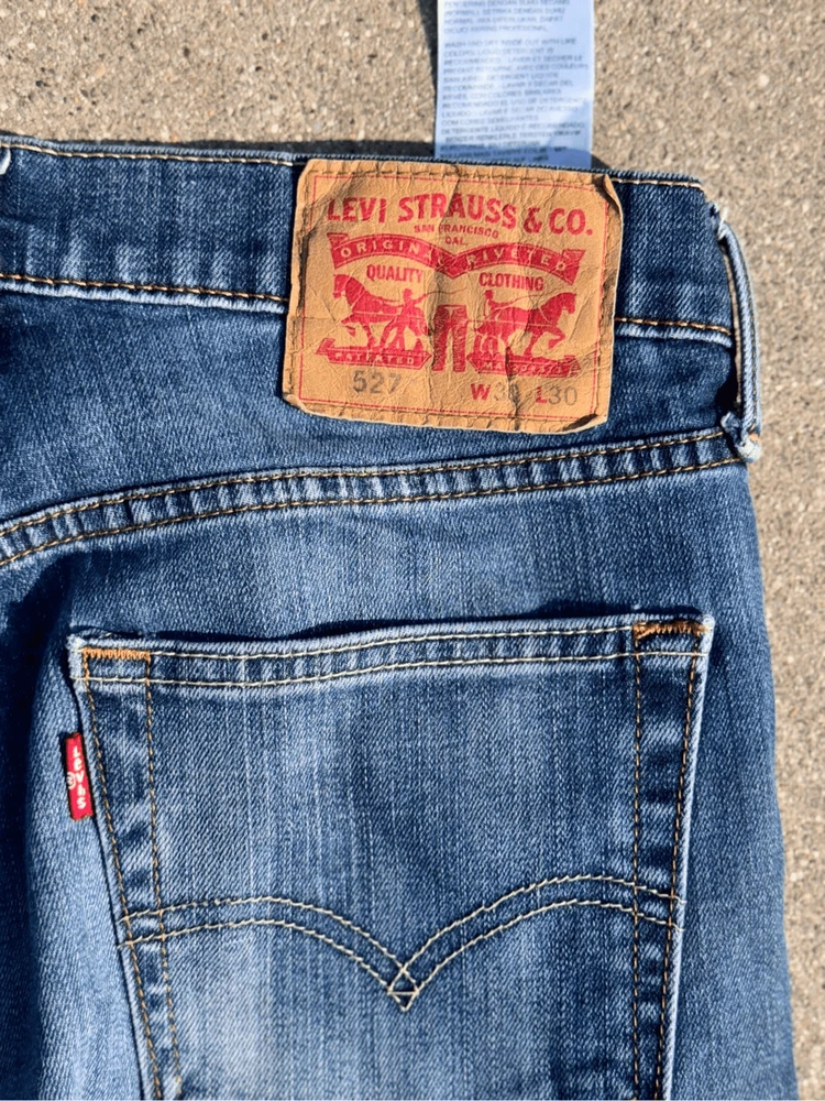Levi's 527 jeans. Waist is 30 length is 30. Classic light blue wash. Five pocket. Printed pocket. Made in Pakistan. No rips, tears or stains. This is a great preowned already broken in classic pair of Levi's. Brown tab on the waistband.
