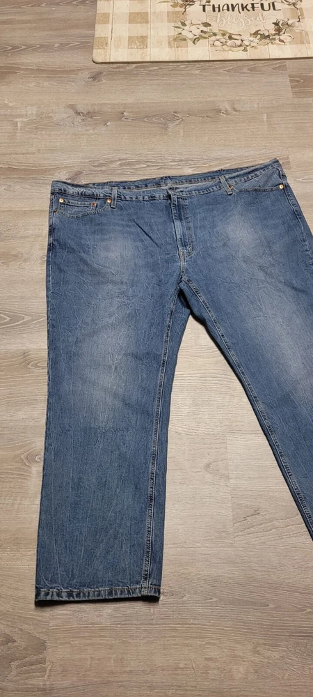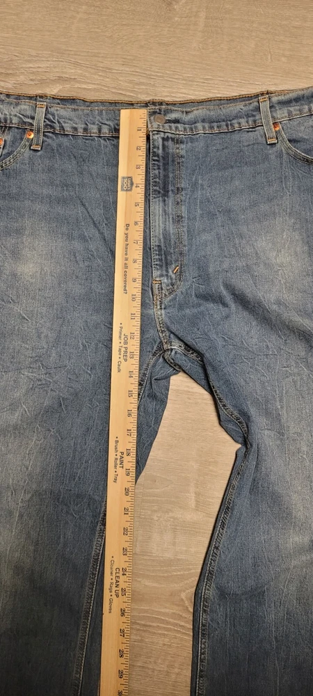 Upgrade your denim collection with these Levi's 541 straight leg jeans. The medium wash cotton and elastane blend fabric is perfect for everyday wear and is machine washable for easy care. The blue color and denim fabric type make these jeans a versatile addition to any wardrobe. These big and tall size W52 L30 jeans are designed to fit comfortably and feature a straight leg style. The inseam length can be seen in the photos provided. These Levi's 541 jeans are a high-quality option for any man looking to add a durable and stylish pair of jeans to their collection. B