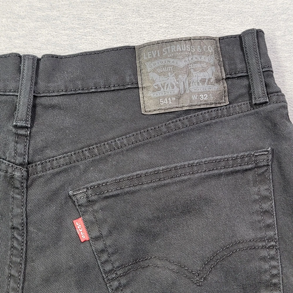 Crafted for comfort and style, these Levi's 541 denim shorts are a go-to for the modern man. The size 32 waist with a mid-rise fit offers a classic look that's both flattering and versatile. The Bermuda style cut paired with a solid black color makes them an easy match for a variety of occasions. The blend of cotton and spandex ensures a stretch fit that moves with you, while the 5-pocket design adds practicality to this sleek garment. With an 11-inch inseam and a flat front, these shorts are designed to cater to everyday wear without compromising on style.