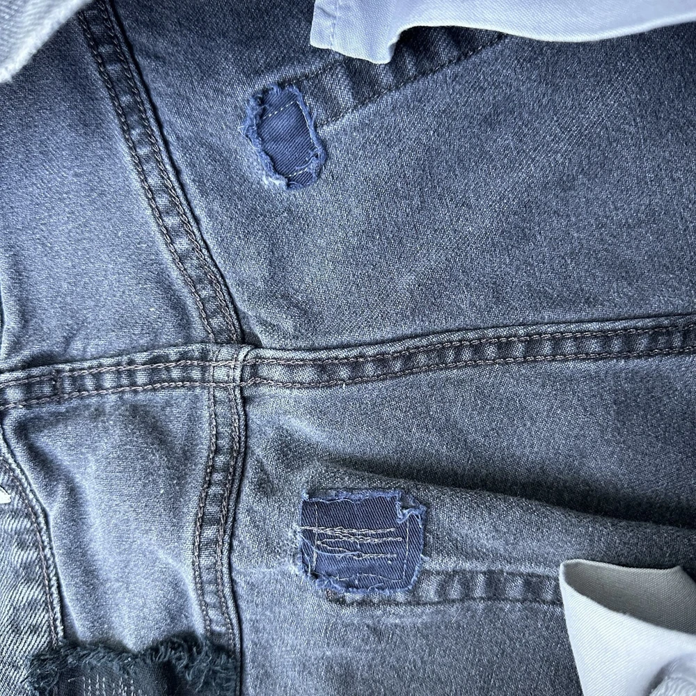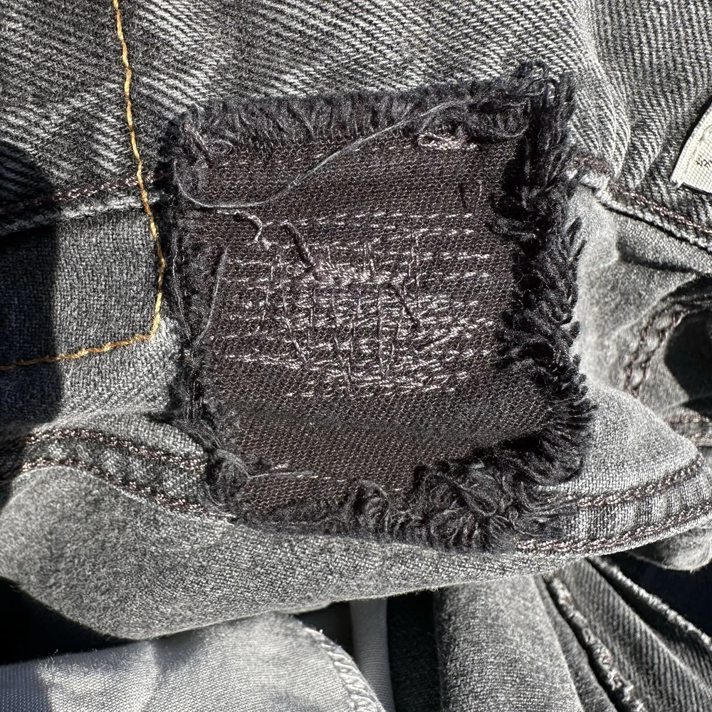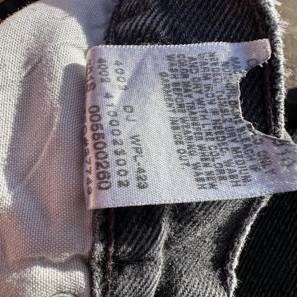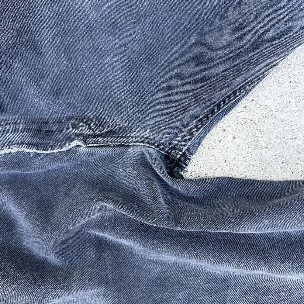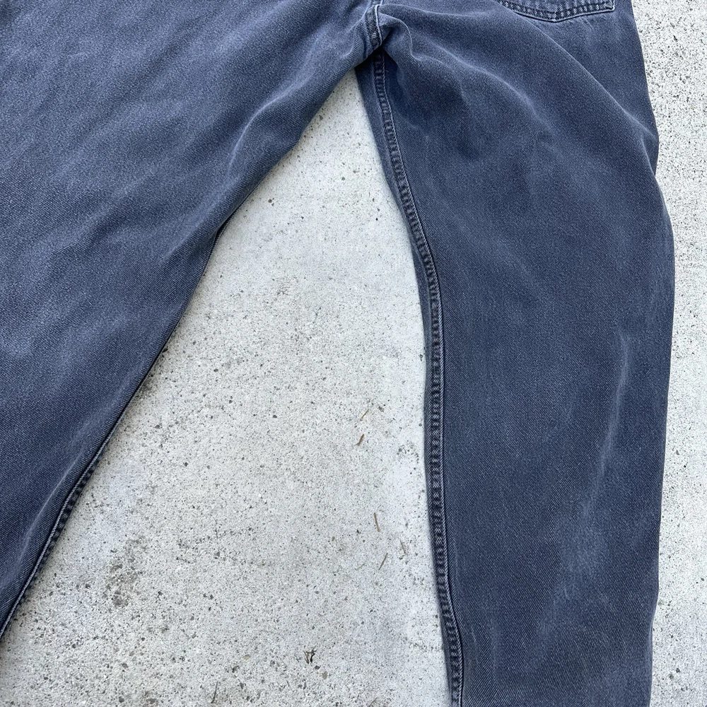 Levi's 550 Jeans for men in black, size 40x30, featuring a relaxed straight fit. Made of medium wash denim with a high rise and a zipper/button closure. The fabric is cotton denim, and the brand is Levi's. The style is part of the Levi's 500 Series, specifically model Levi's 550, and the country of manufacture is Lesotho. These pants have 3 patches for repairs. Nice fade and super comfortable and broken in.