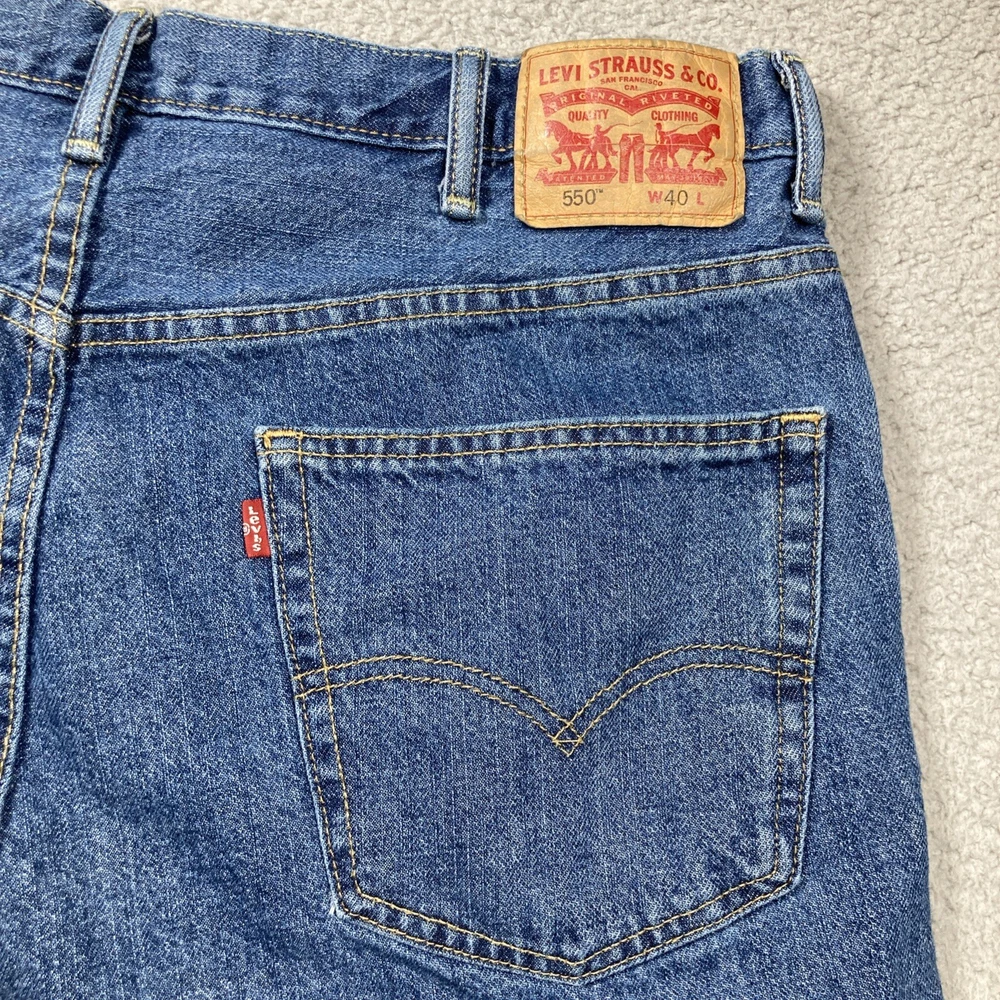 For Sale: Levis 550 Shorts Men's 40 Blue 9.5 in Inseam Work Casual Rugged American Denim Please check photos carefully for details/measurements. Measure your favorite garment and compare. * May be wrinkled upon arrival due to packaging. * This item has been cleaned per eBay policy. We welcome questions and offers! Thank you for taking time to view and consider this item!