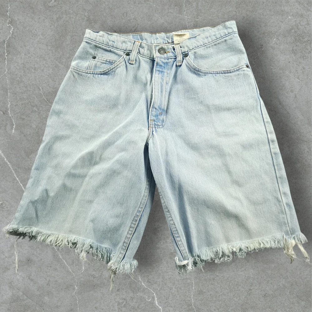 Levi's 560 Cutoff Jorts 30 Unisex Vtg 90s Student Fit Orange Tab USA Light Wash Made in USA These vintage Levis Orange tab jorts are going to sit at or slightly below your waist. There is some minor discoloration/yellowing around the frayed/raw pant legs. Get them before they are gone!! Product Details Waist 29 inches Inseam 9.5 inches Length 20 inches Rise 10.5 inches Leg 22 inches Thigh/Hip 39 inches Material 100% cotton Imported USA I ship the same day if the order is received by 1 PM EST or ship the next day utilizing recycled, sustainable packaging and materials. I do not ship to Belarus, Russia, Mexico, Vietnam, and Germany due to national shipping requirements/restrictions. I offer automatic combined shipping and also I offer bundle and shipping discounts for 2 or more items purchased in my store. Buyer is responsible for the payment of all import fees if international sale. I accept returns if permitted by the platform that the item was purchased on within 30 days of delivery date. Items must be returned in the condition received. International returns are at the buyer's expense. All clothing items have been steam cleaned and/or washed. If you have questions, I will respond as quickly as I can.