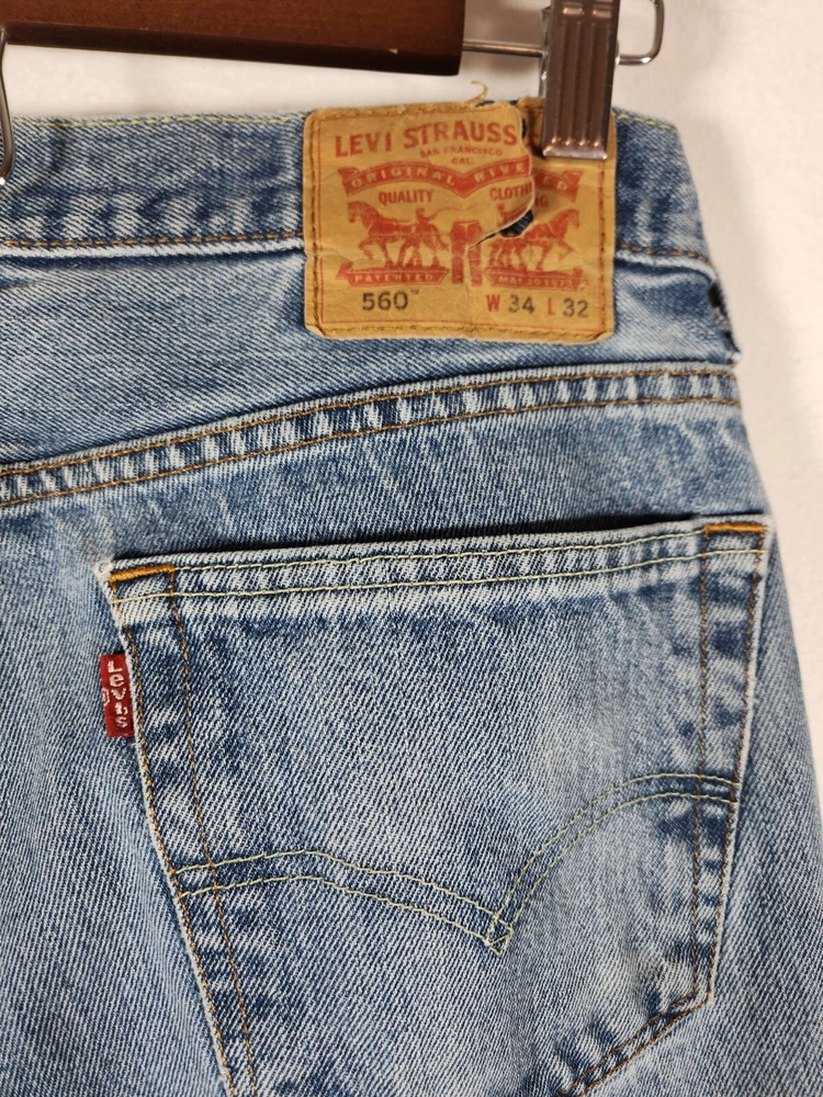 Levis 560 Jeans Men 34x32 Blue Loose Fit Tapered Leg Baggy Please see pictures for measurements. Thanks for looking!