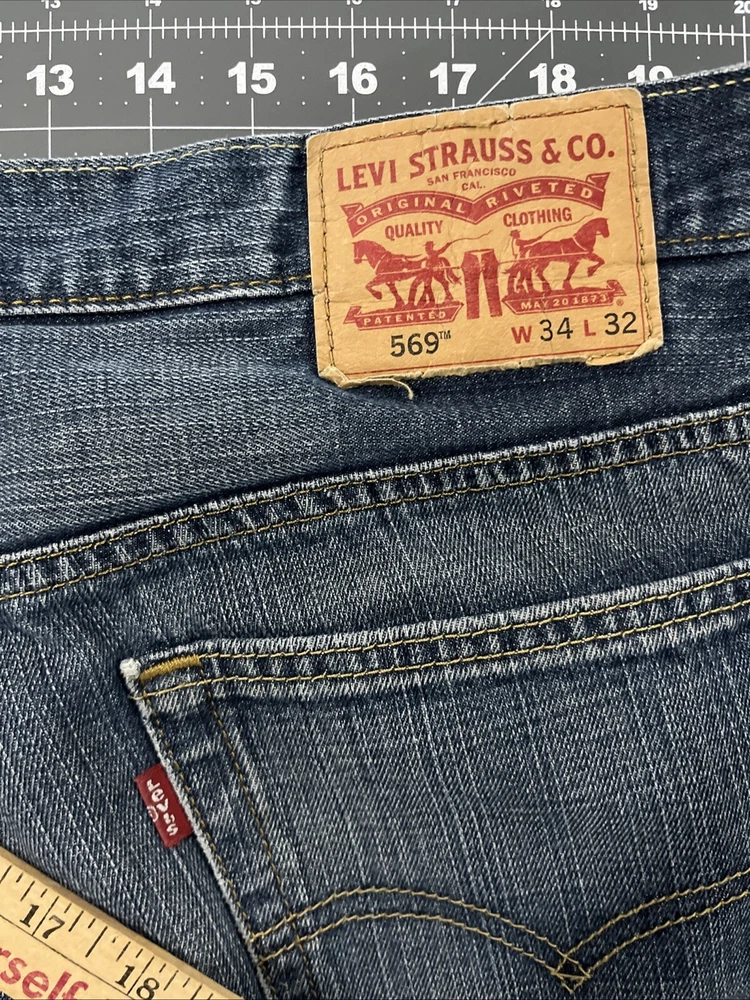Levi’s 569 Loose Straight Jeans Mens 34x32 Blue Fade 100% Cotton Denim