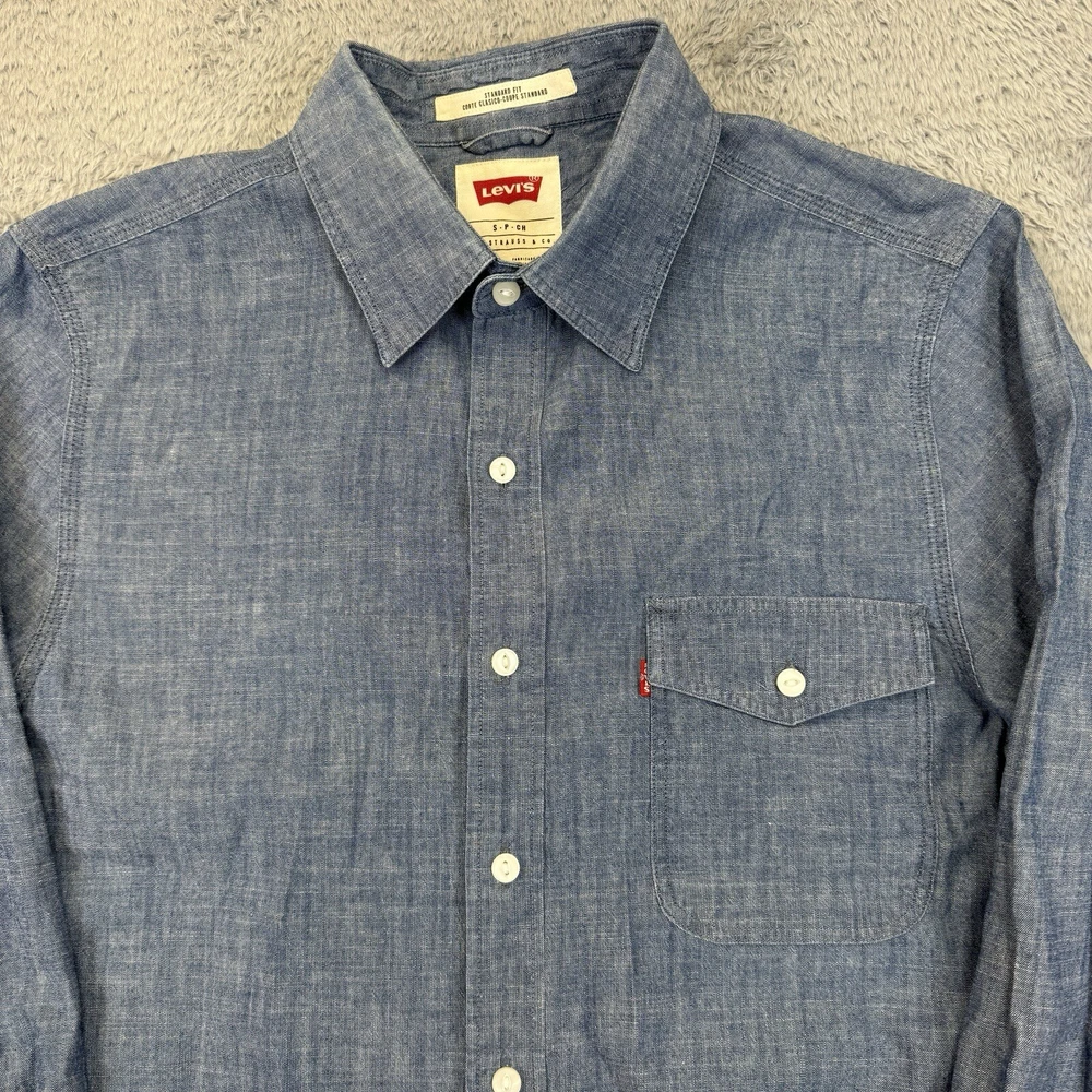 Levi’s Blue Denim Chambray Long Sleeve Button Up Shirt Casual Men’s Size Small