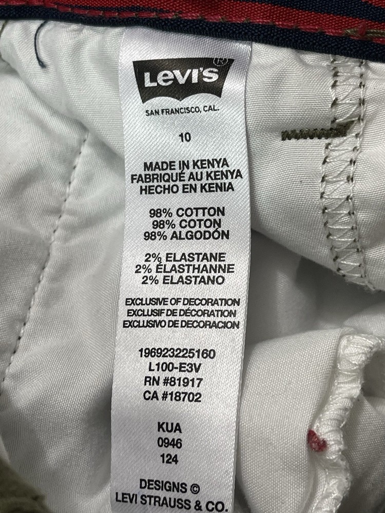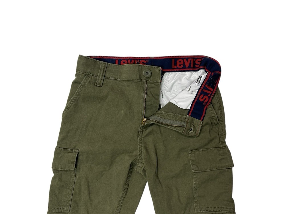 Size: 10 Country of Origin: Kenya Features: Adjustable Waist Theme: Modern, American Brand: Levi's Occasion: Casual Fit: Regular Closure: Zip Handmade: No Color: Green Department: Boys Season: Summer, Spring, Fall Performance/Activity: School, Walking, Hiking Material: Cotton, Spandex Pattern: Solid Vintage: No Waist Size: 25 Front Type: Flat Front Style: Cargo Garment Care: Machine Washable Rise: Mid (10-12 in) Fabric Wash: Medium