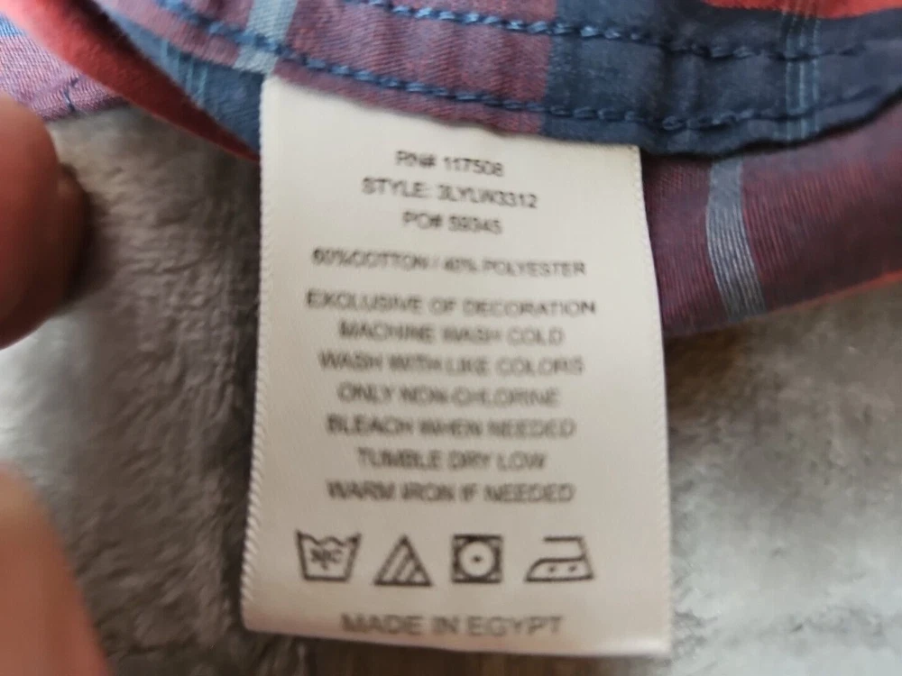 This is a vintage Levi's button-up shirt in size M, made in Egypt. The shirt features a plaid pattern with long sleeves, a collared neckline, and Levis buttons. It is crafted from a cotton/polyester blend fabric in a multicolor design. The shirt has a regular fit and includes pockets, making it suitable for travel, casual wear, and work attire. The Dad, 70s, classic, and 90s themes add a retro touch to the garment.